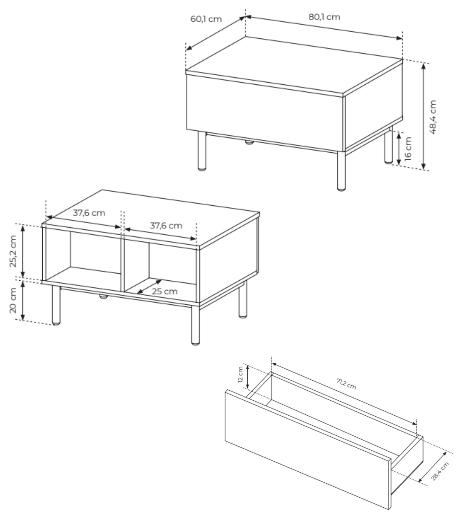 Stolik kawowy NONNA z szufladą 80×60 cm
