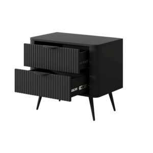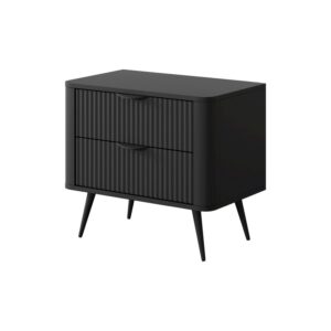 Stolik nocny dwudrzwiowy NEST 63 cm ryflowany front czarny
