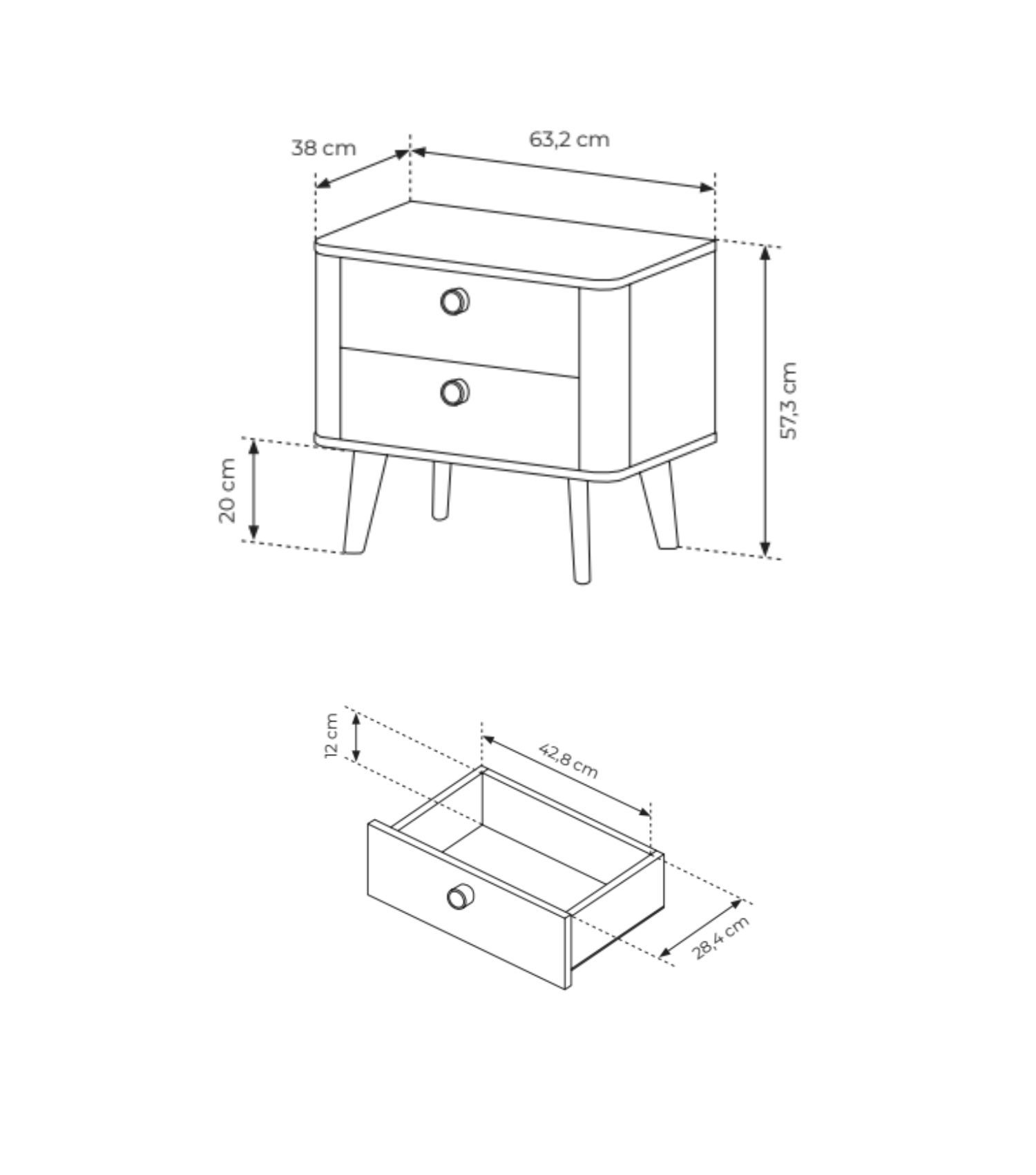 Stolik nocny MOLLY z dwiema szufladami 63 cm dąb barista