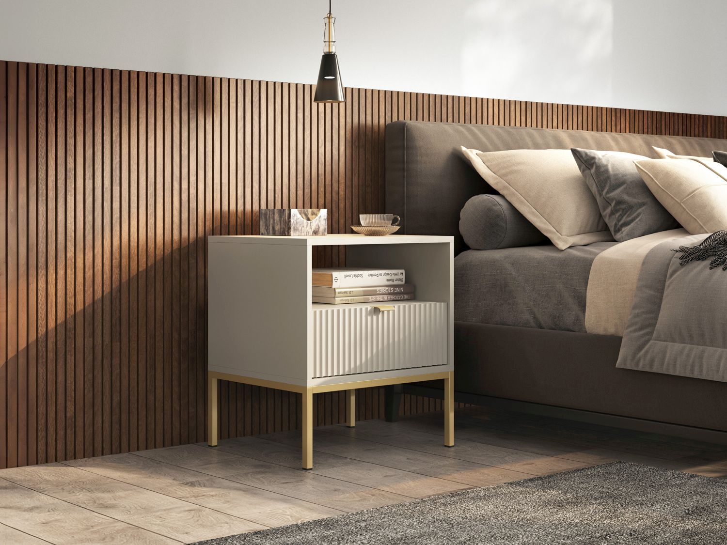 Stolik nocny ORT 56 cm z szufladą ryflowany front kaszmir
