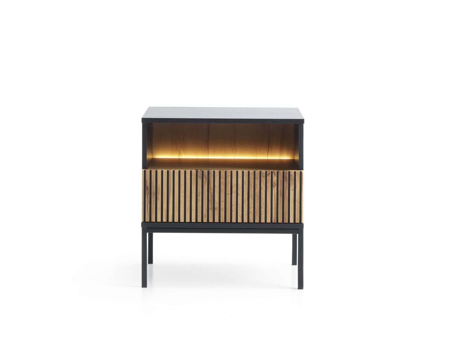 Stolik nocny SORO 153 cm z LED, lamele, LED, czarny, dąb wotan