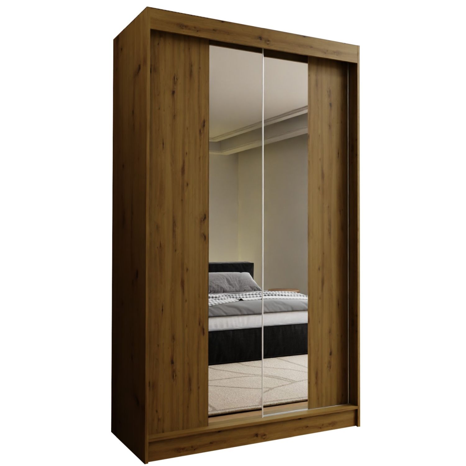 Szafa przesuwna ARMONA 120 PLUS z dwiema szufladami i dwoma lustrami dąb artisan