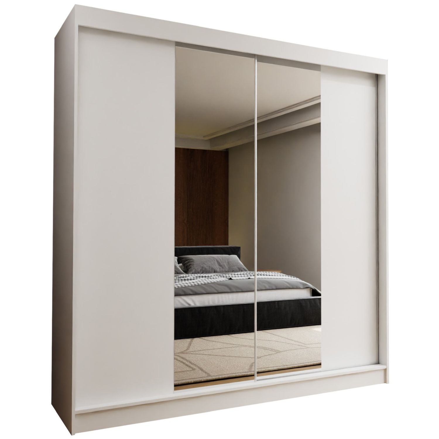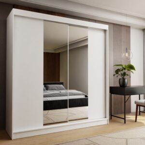 Szafa przesuwna ARMONA 200 PLUS z czteroma szufladami i dwoma lustrami biały