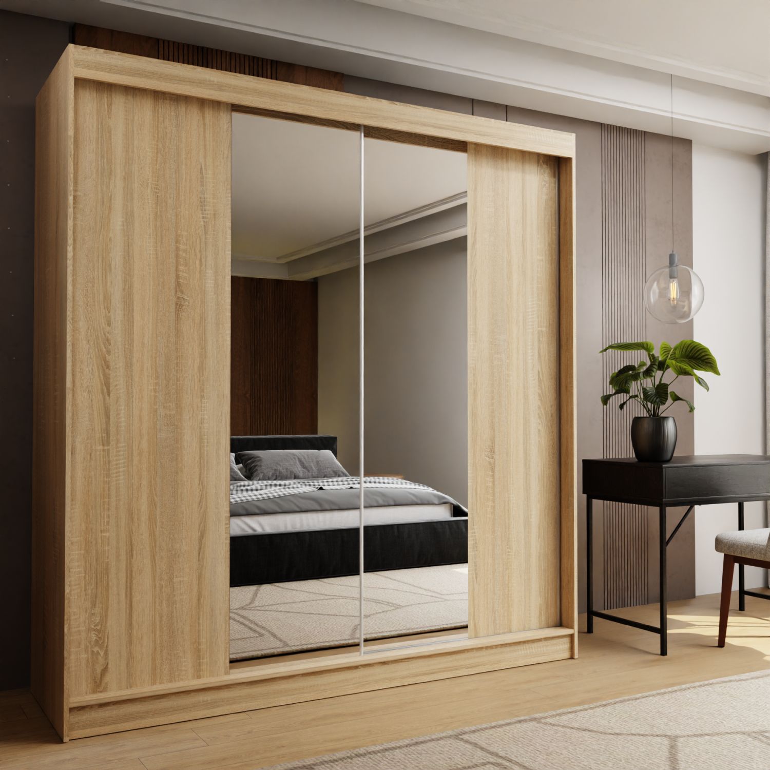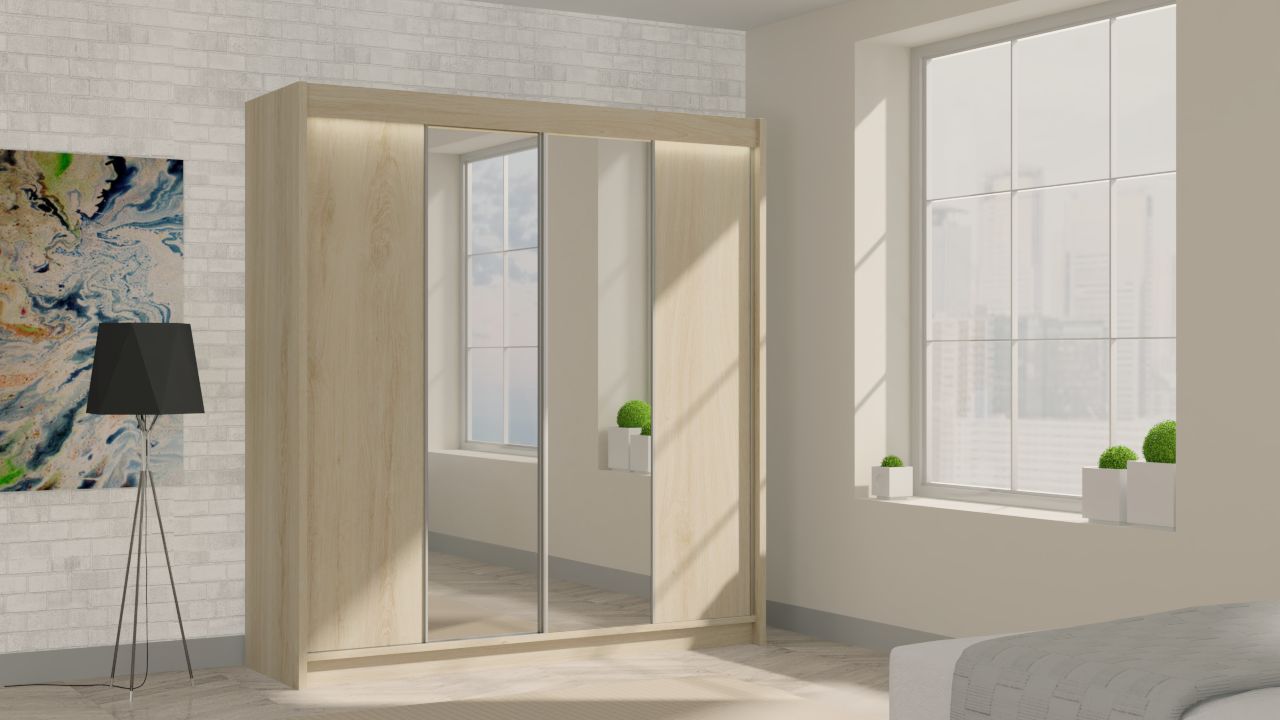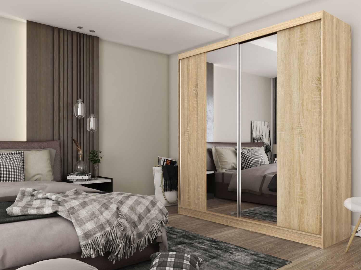 Szafa przesuwna ARMONA 200 PLUS z czteroma szufladami i dwoma lustrami dąb sonoma