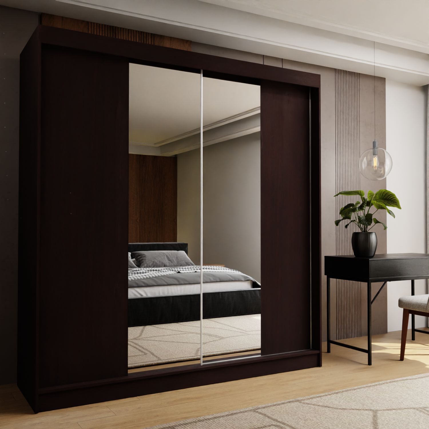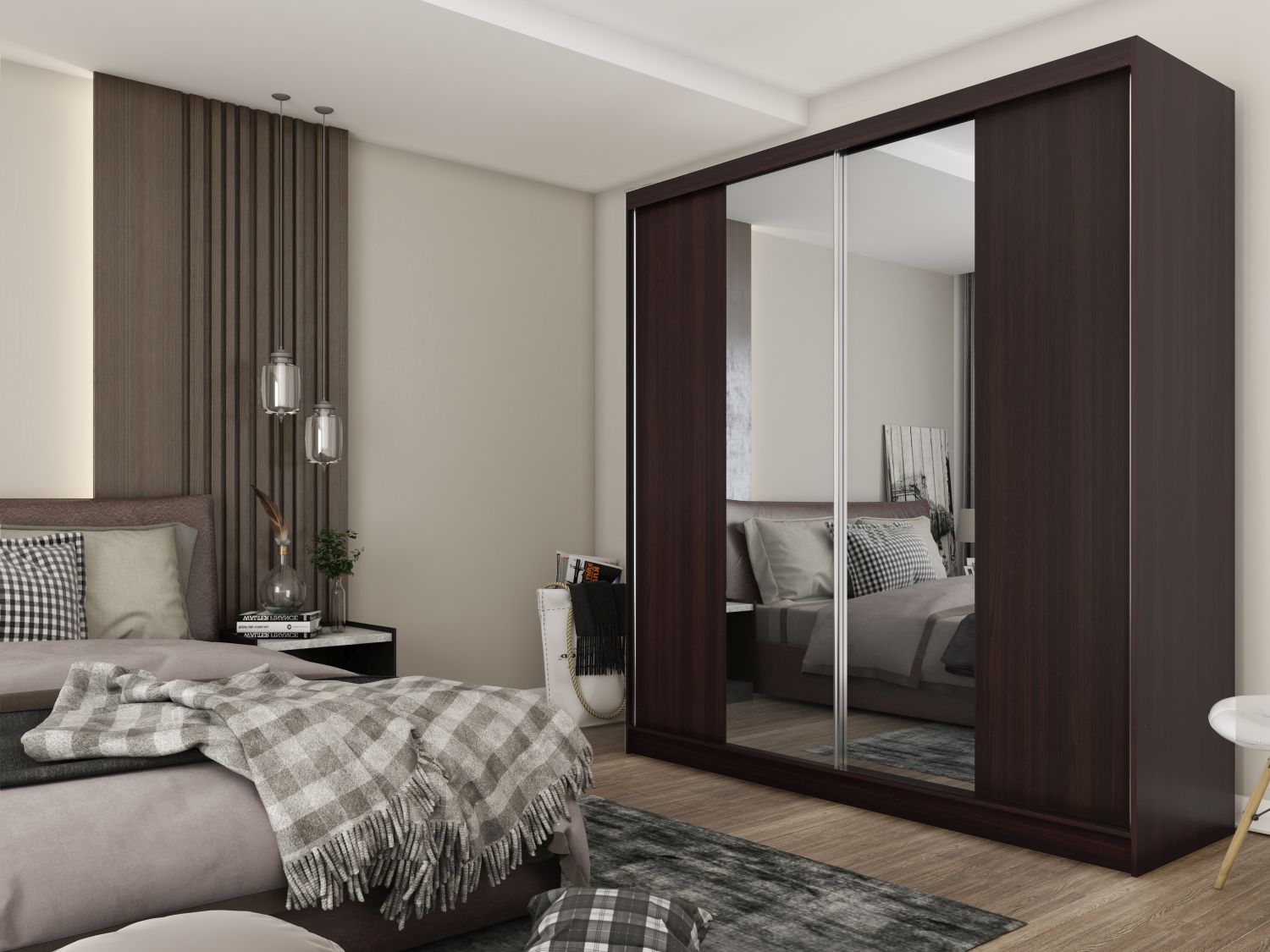 Szafa przesuwna ARMONA 200 PLUS z czteroma szufladami i dwoma lustrami wenge