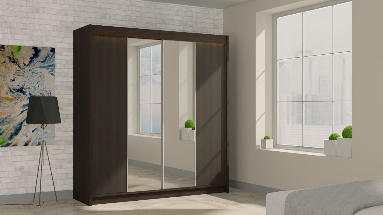 Szafa ARMONA w kolorze wenge łączy elegancki wygląd z funkcjonalnym wnętrzem, stanowiąc doskonały wybór do stylowych, ponadczasowych aranżacji sypialni.