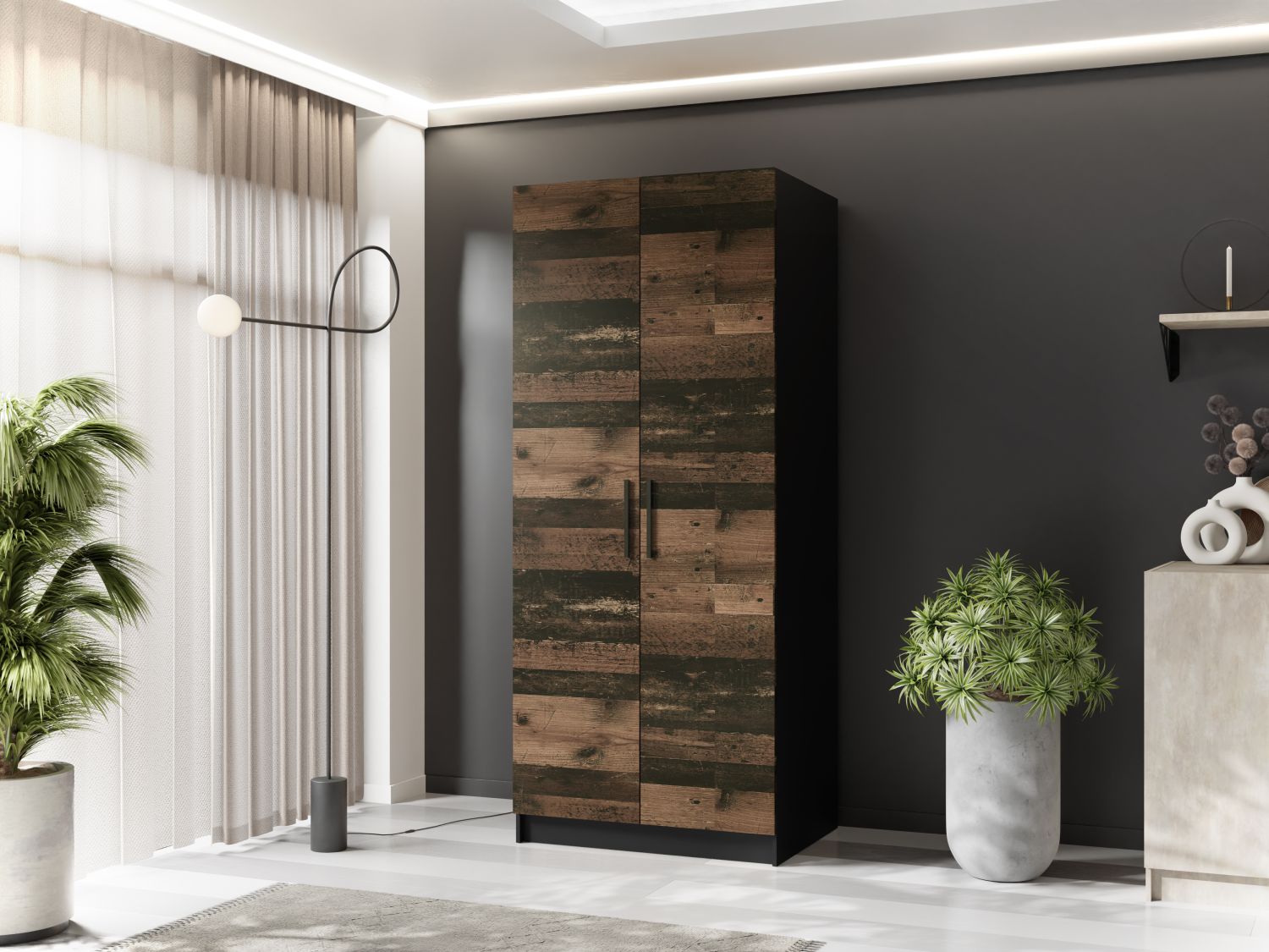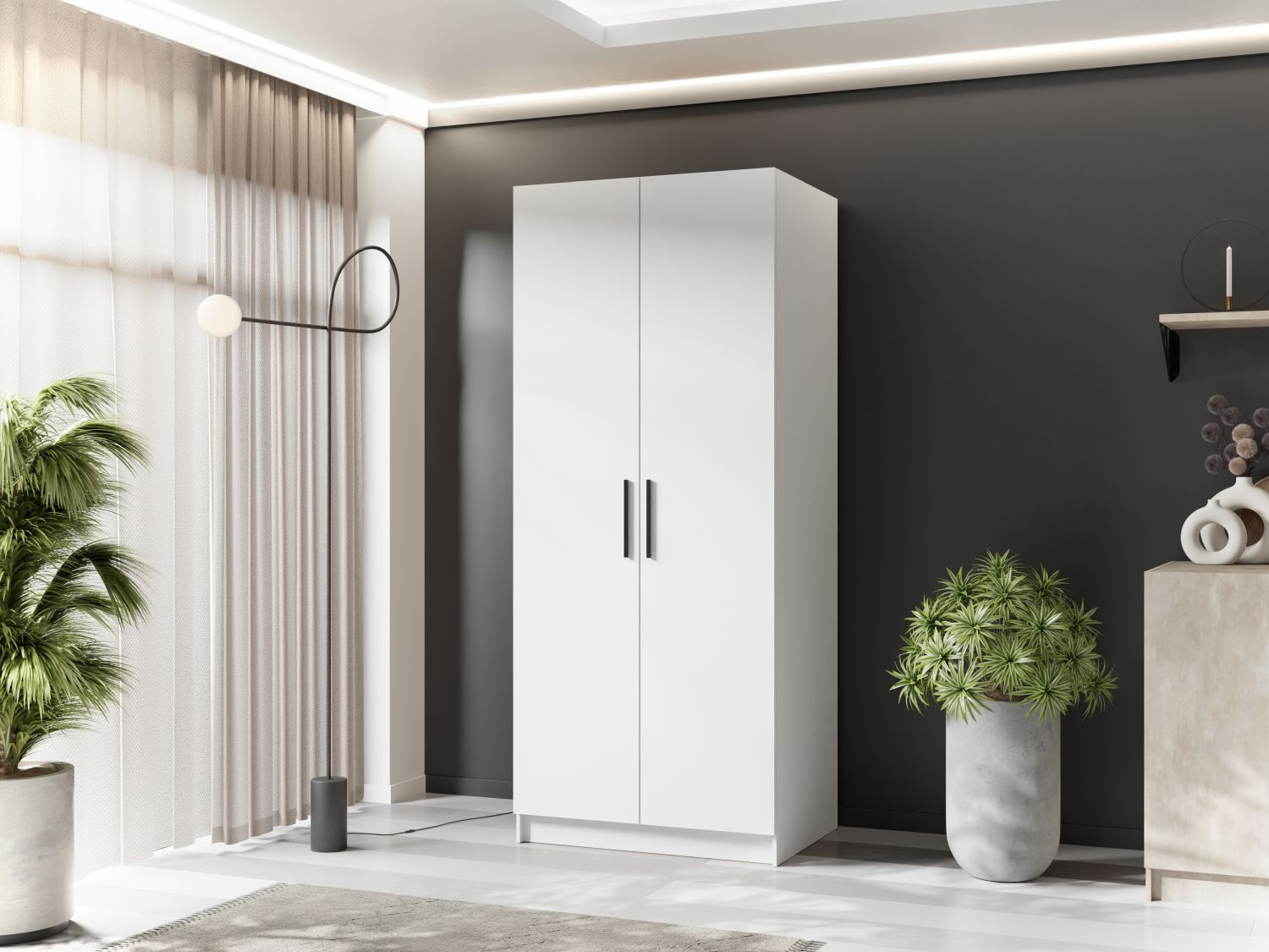 Minimalistyczna forma, eleganckie wykończenie i dbałość o detale sprawiają, że szafa doskonale wpasuje się w wystrój każdego wnętrza.