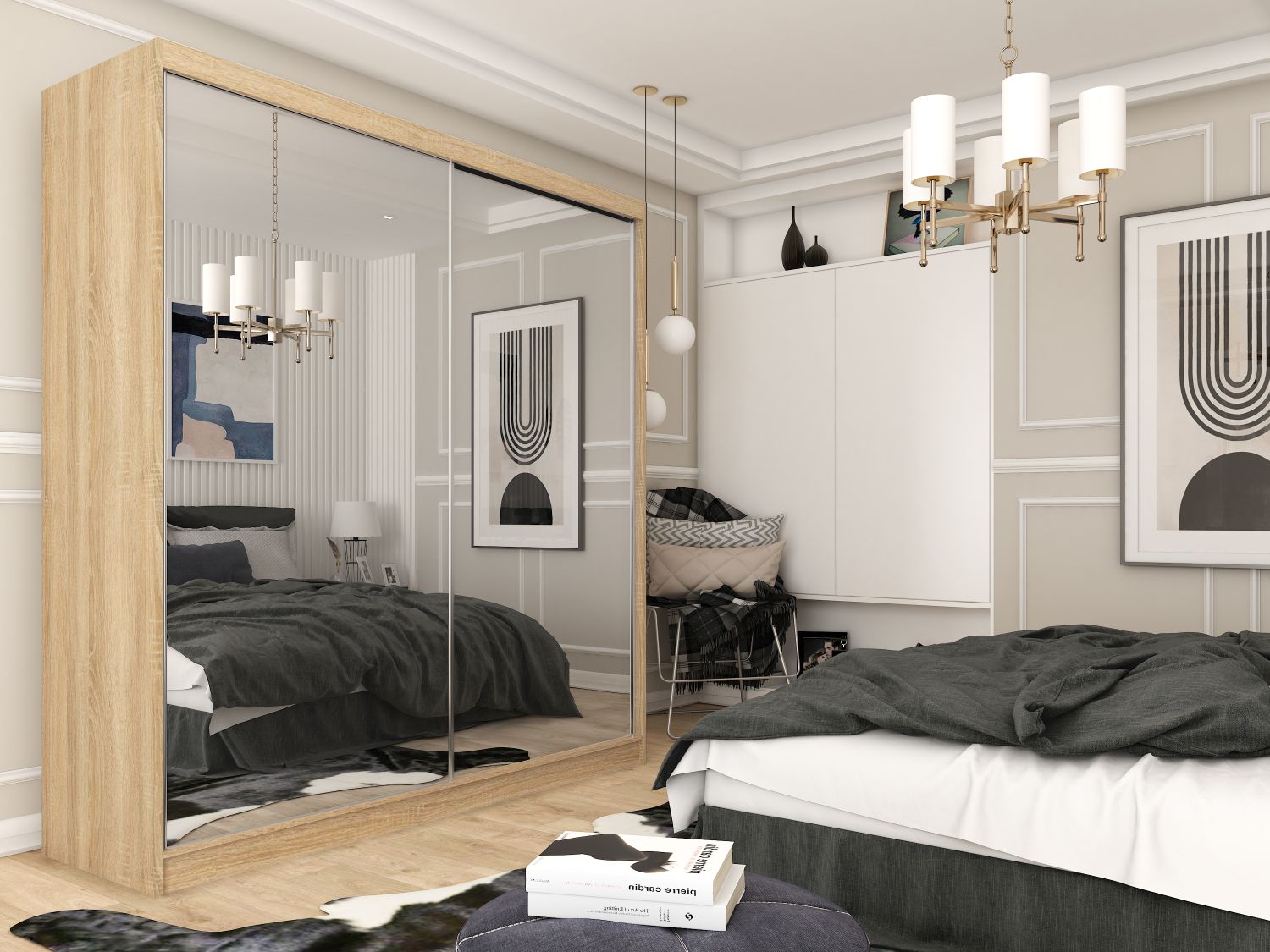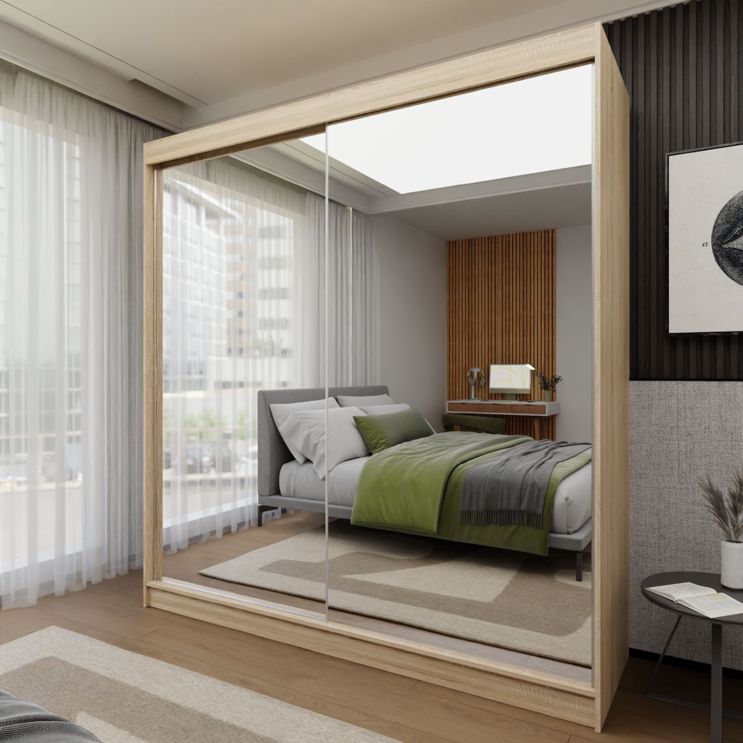 Szafa przesuwna FIORINA 200 z dwoma lustrami dąb sonoma