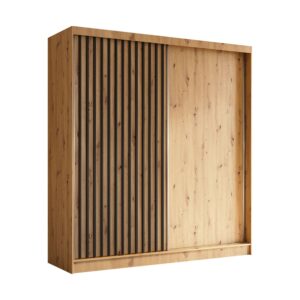 Szafa przesuwna ILARIA 200 PLUS z czteroma szufladami, lamelami dąb artisan