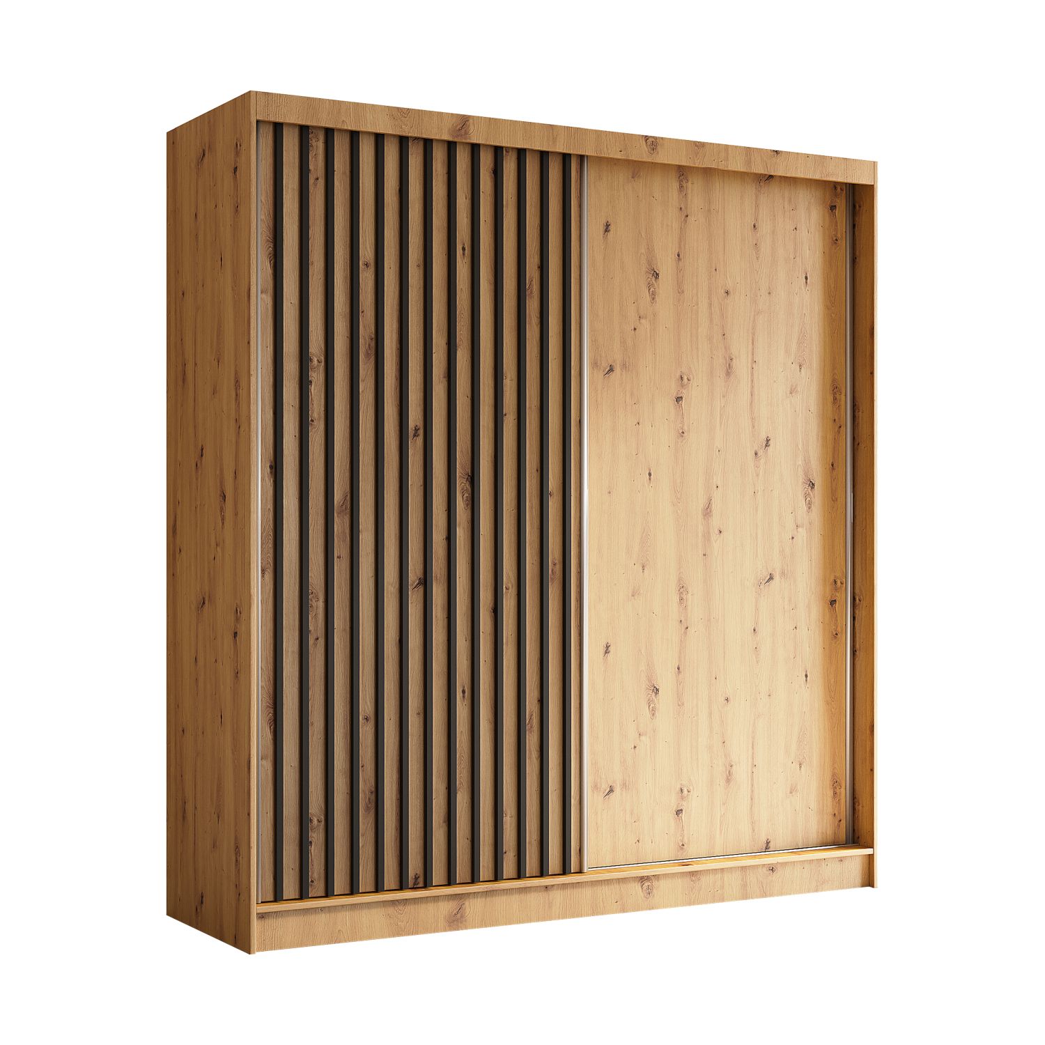 Naturalny urok i nowoczesna funkcjonalność wyróżniają kolekcję ILARIA, w której elegancka, prosta forma została połączona z ciepłym wybarwieniem dąb artisan. Dekoracyjne pionowe lamele podkreślają nowoczesny design mebla, nadając mu przytulny i stylowy charakter.