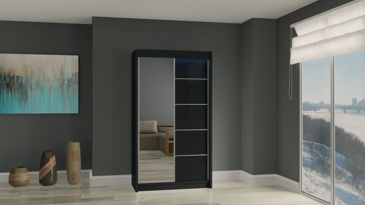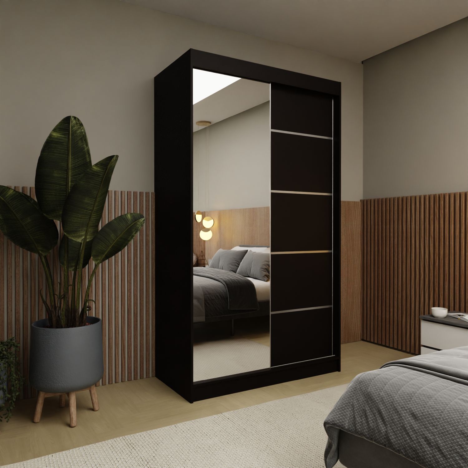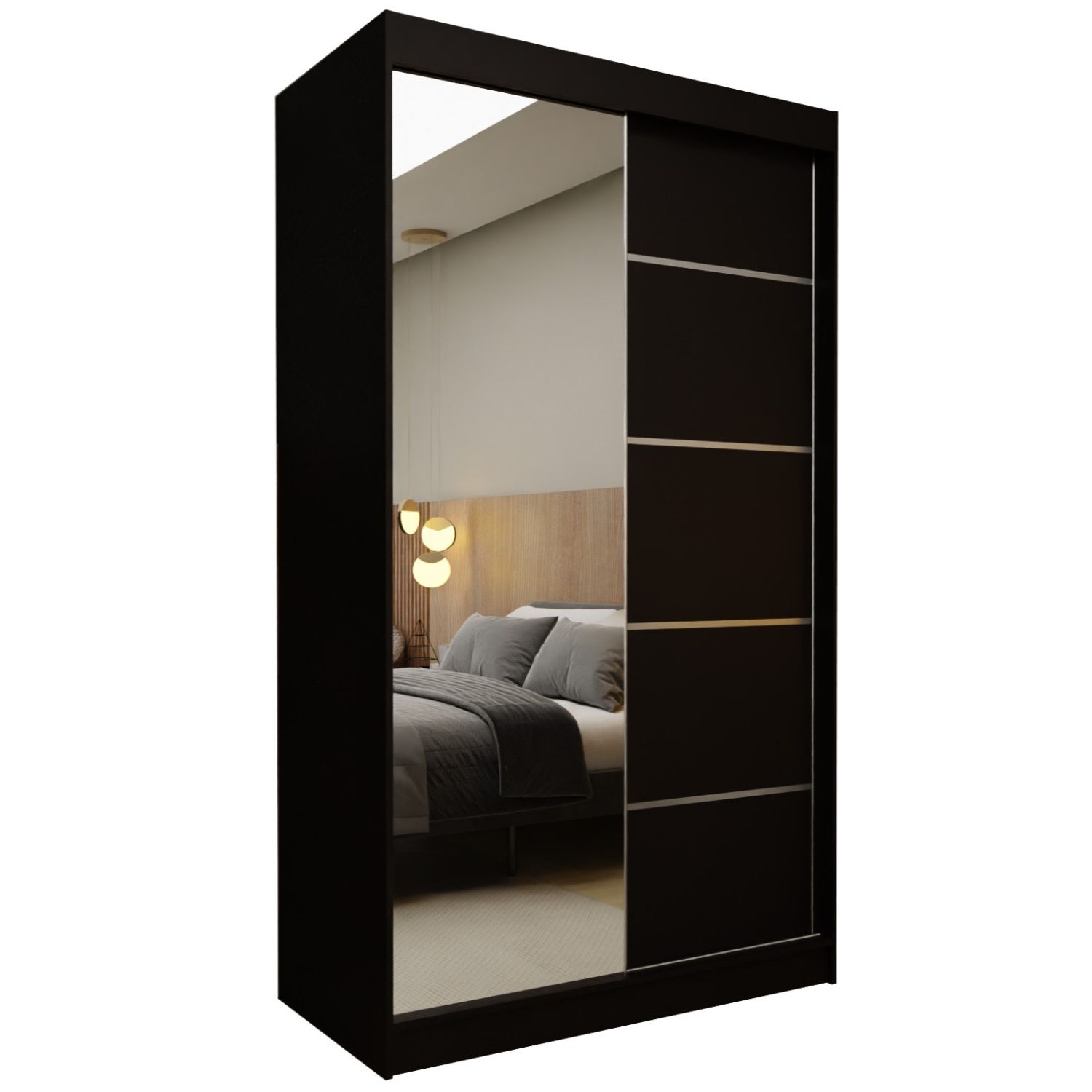 Szafa przesuwna MELIORA 120 z lustrem i listwami dekoracyjnymi czarny