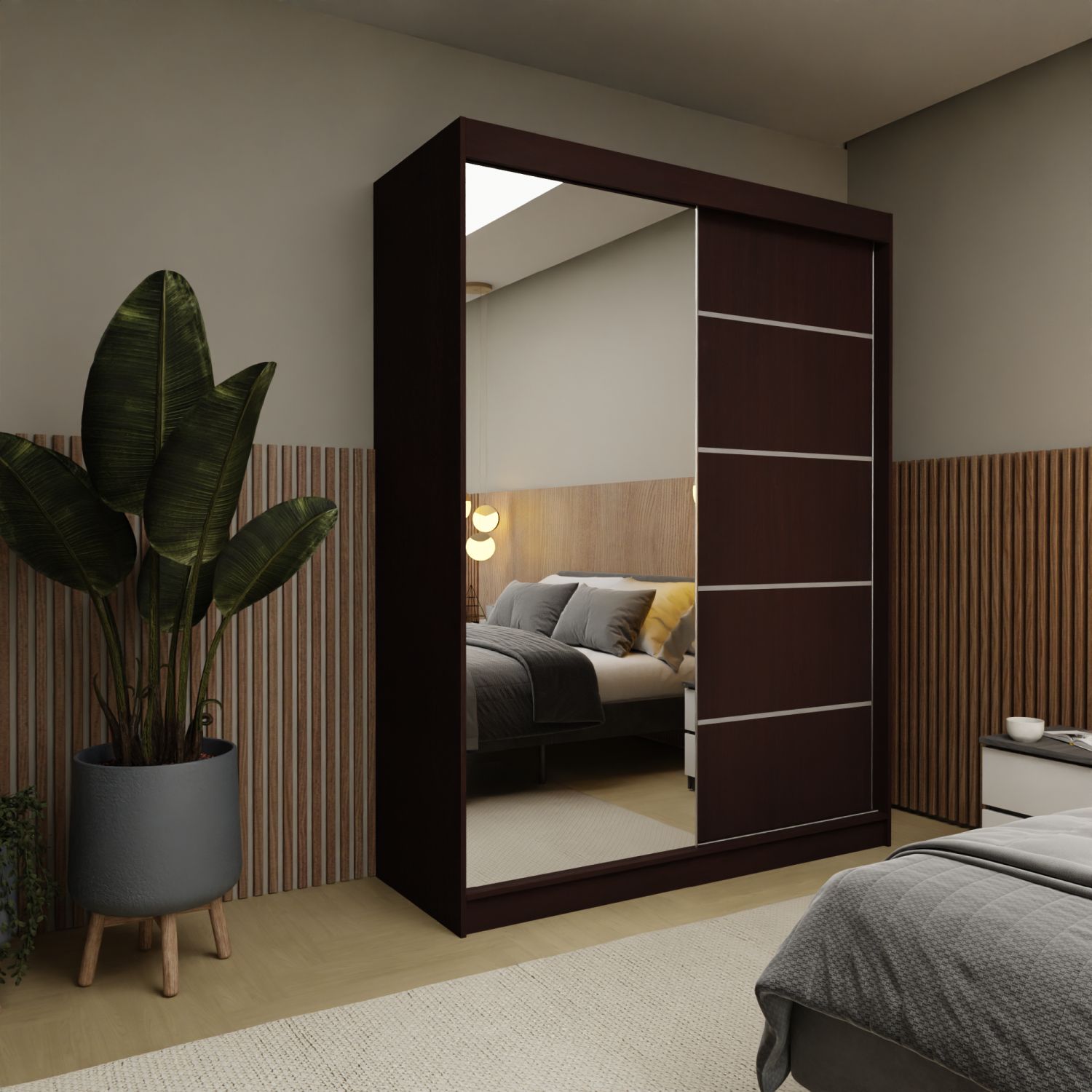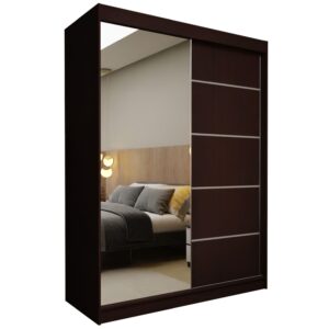Szafa przesuwna MELIORA 150 z lustrem i listwami dekoracyjnymi wenge Szafa przesuwna MELIORA 150 z lustrem i listwami dekoracyjnymi wenge