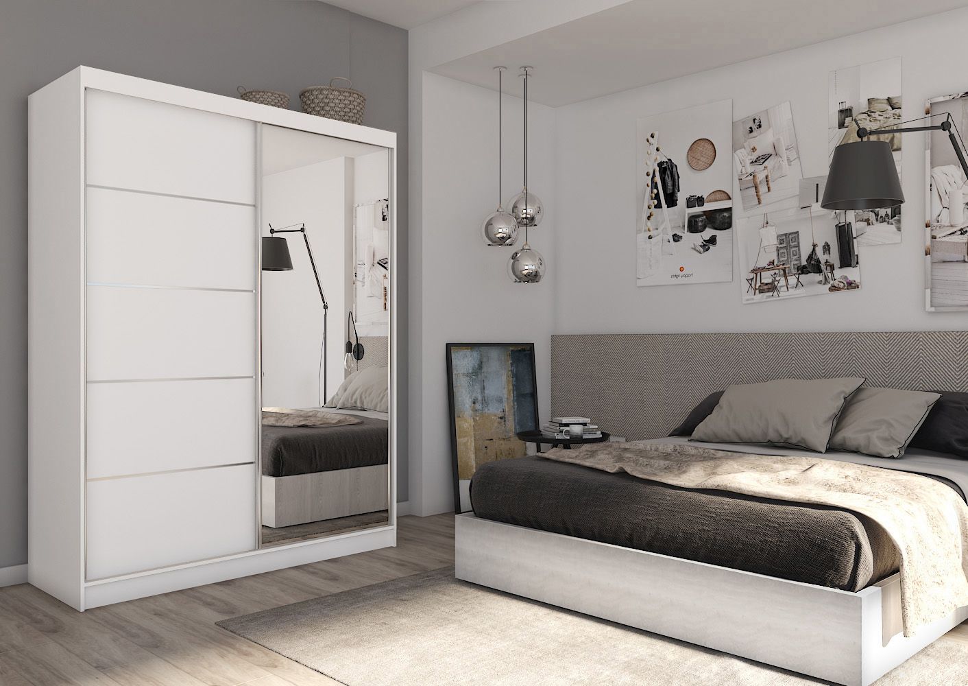 Szafa MELIORA 160 w kolorze białym to elegancki mebel, który wnosi do wnętrza świeżość, lekkość i nowoczesny charakter. Jasne wykończenie optycznie powiększa przestrzeń, dzięki czemu szafa doskonale sprawdzi się zarówno w większych, jak i mniejszych pomieszczeniach.Front zdobi duże lustro oraz subtelne listwy dekoracyjne, które nadają całości wyrafinowanego wyglądu. Wnętrze mebla wyposażono w drążek na ubrania oraz pojemne półki, umożliwiające praktyczne przechowywanie garderoby. Drzwi przesuwne zapewniają komfort użytkowania, a solidna konstrukcja z trwałych materiałów gwarantuje stabilność i długowieczne użytkowanie.
