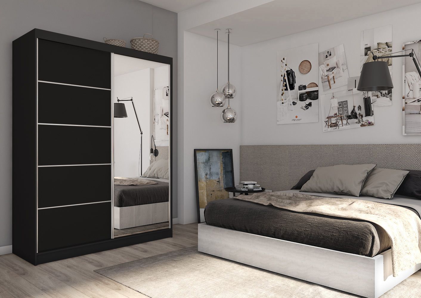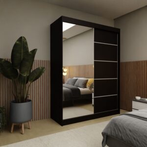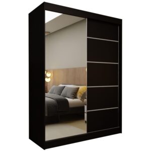 Szafa przesuwna MELIORA 160 z lustrem i listwami dekoracyjnymi czarny