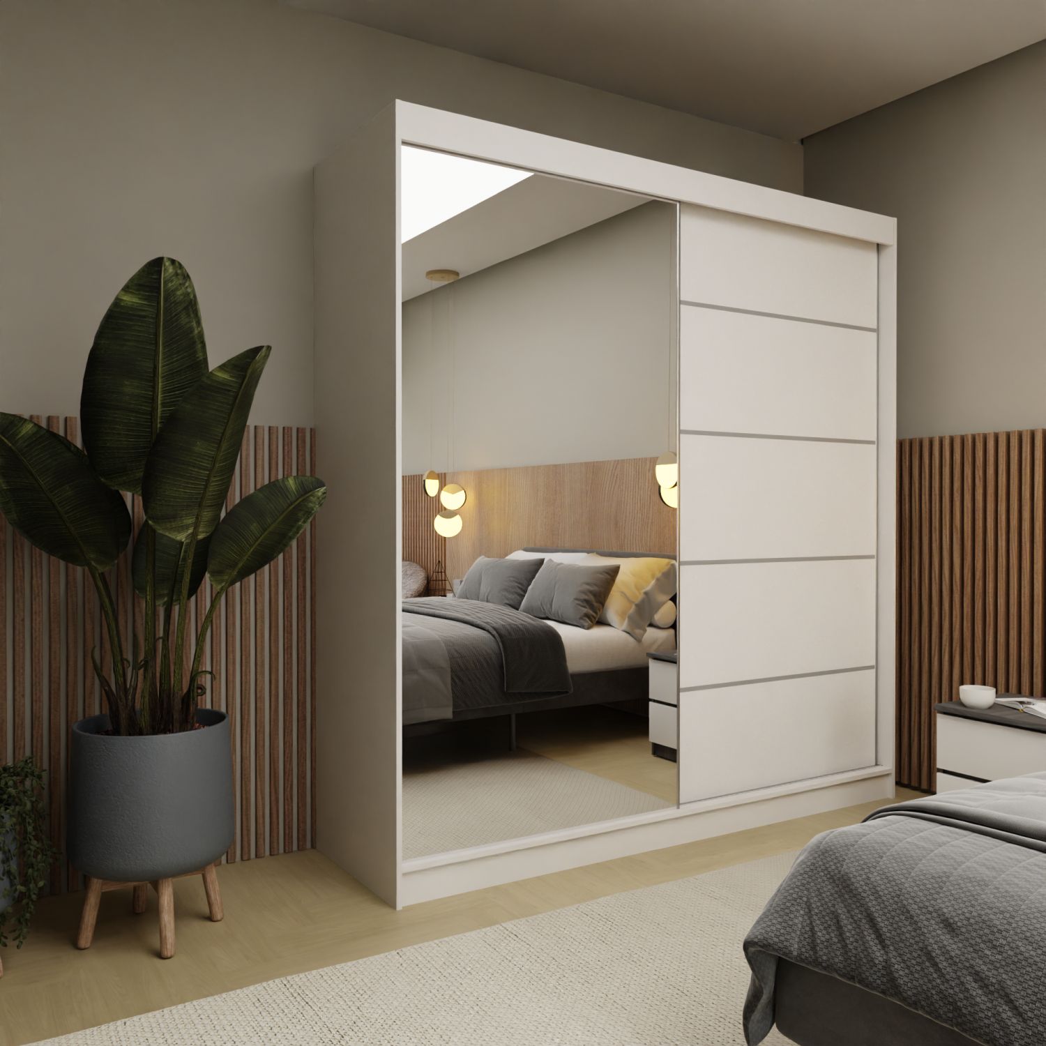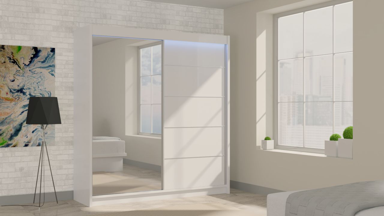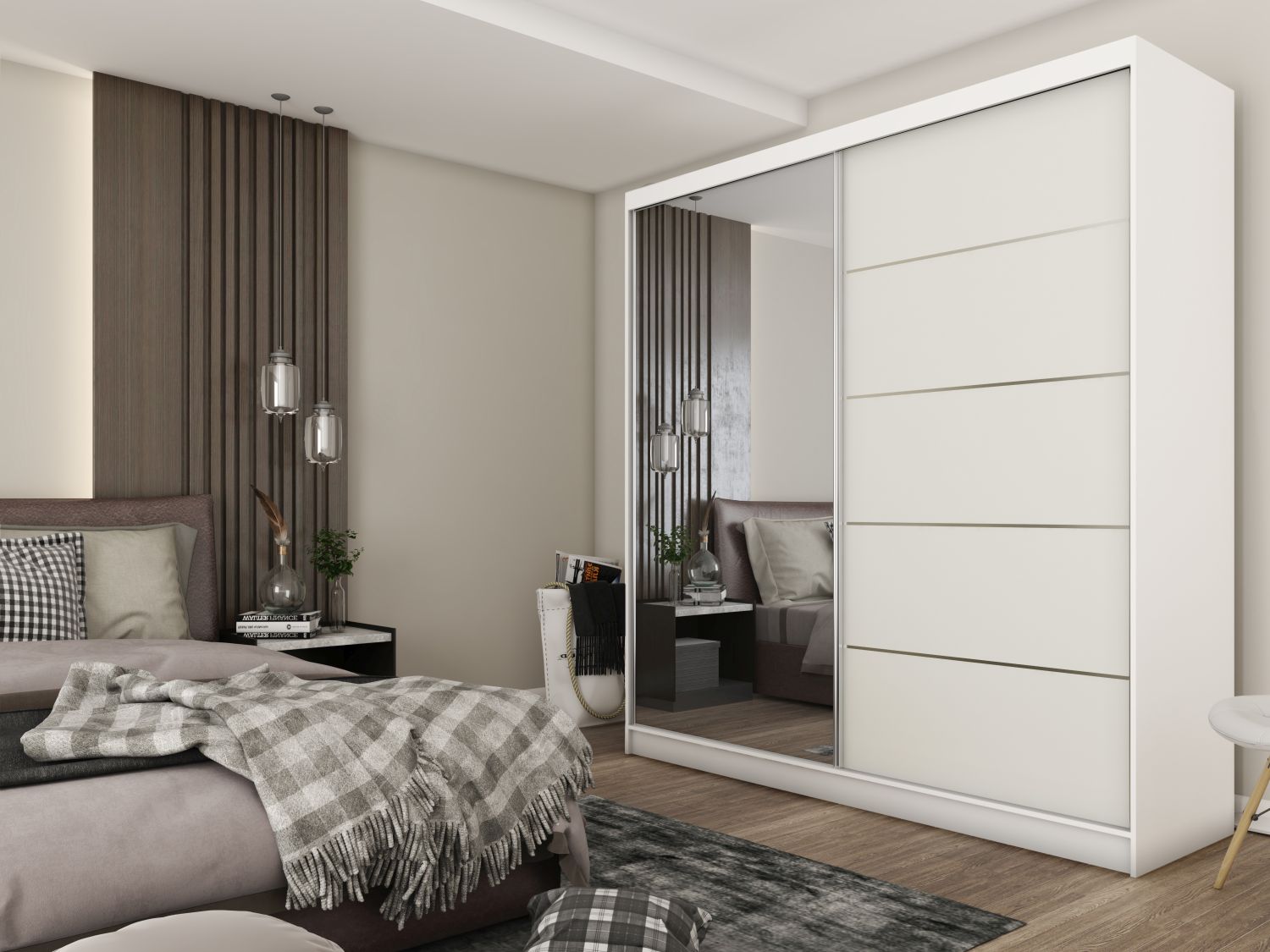 Szafa przesuwna MELIORA 200 z lustrem i listwami dekoracyjnymi biały