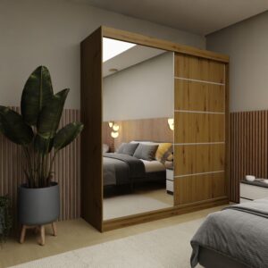 Szafa przesuwna MELIORA 200 z lustrem i listwami dekoracyjnymi dąb artisan Szafa przesuwna MELIORA 200 z lustrem i listwami dekoracyjnymi dąb artisan