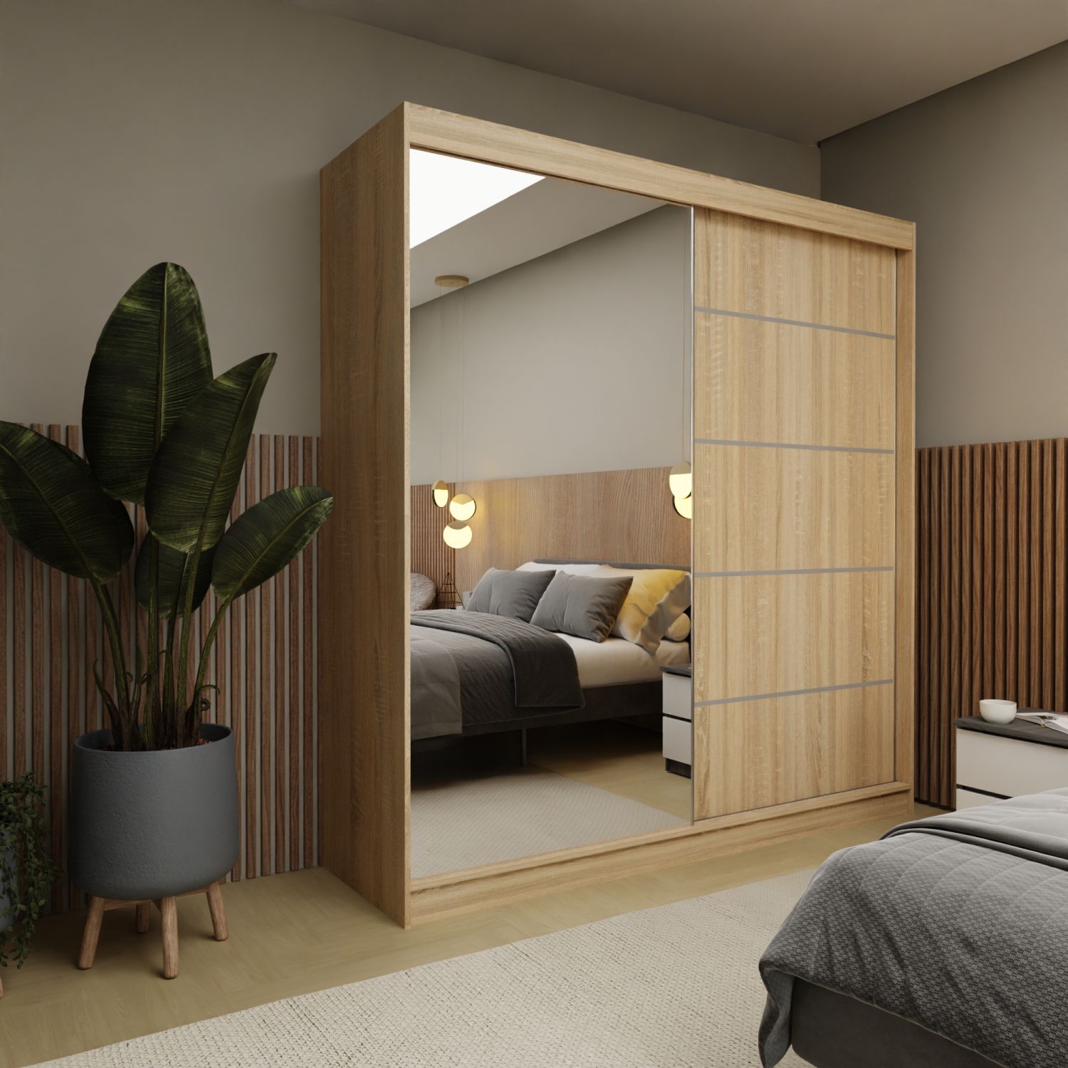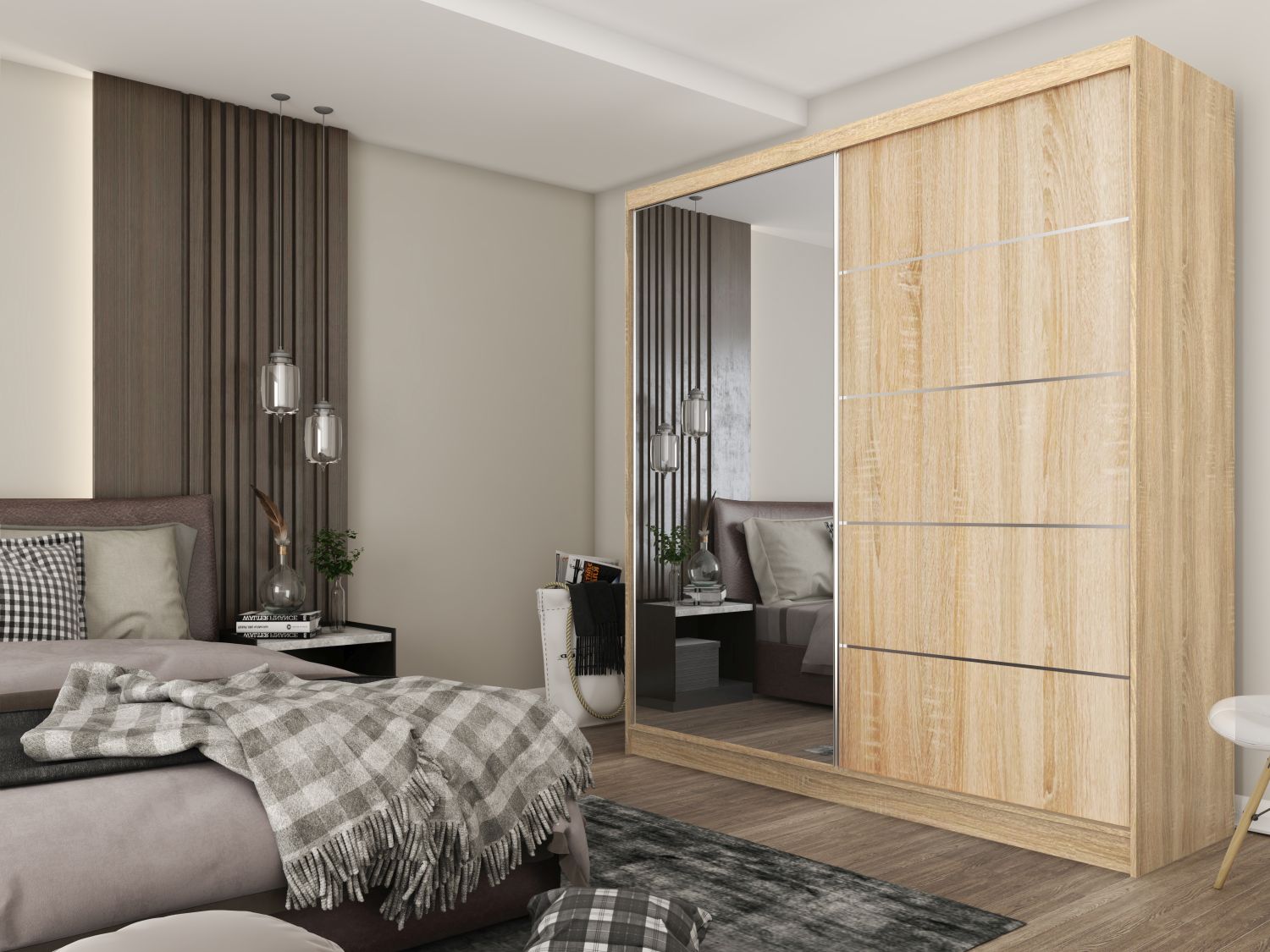 Szafa przesuwna MELIORA 200 z lustrem i listwami dekoracyjnymi dąb sonoma Szafa przesuwna MELIORA 200 z lustrem i listwami dekoracyjnymi dąb sonoma
