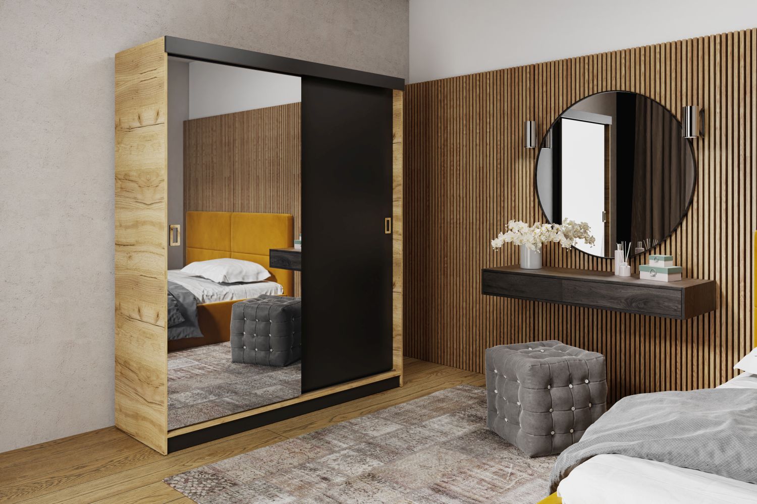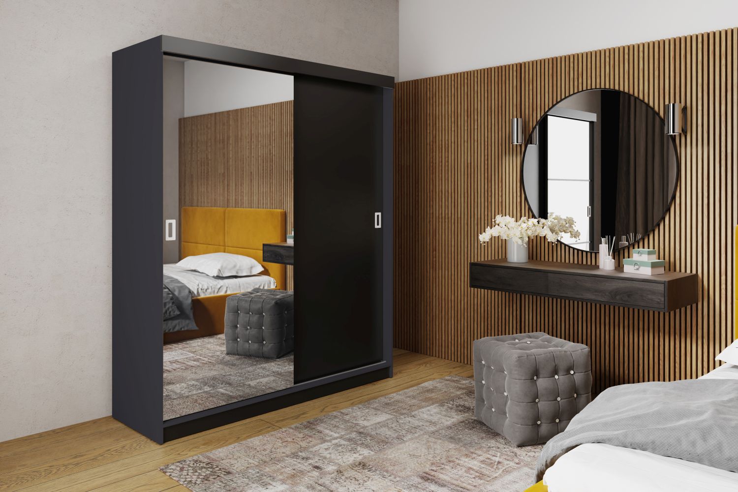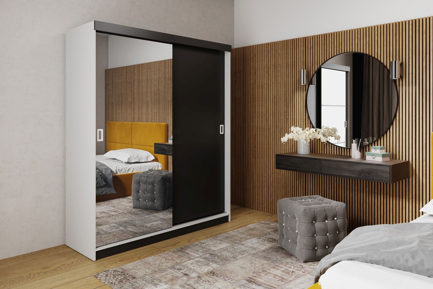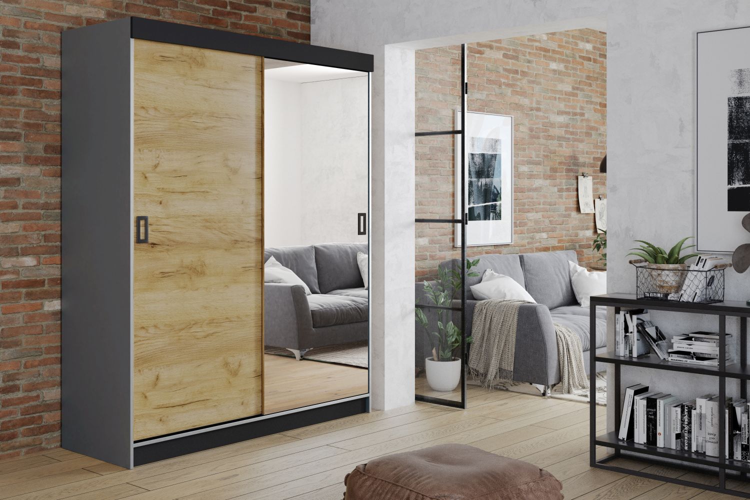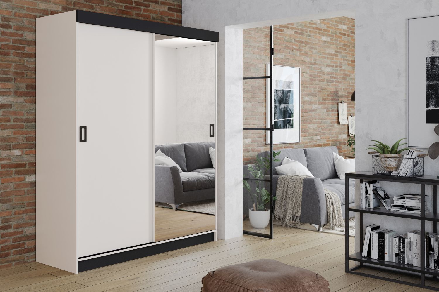 Lekkość i porządek w wąskim wnętrzu – dwudrzwiowa szafa MODERN 1 138 cm z lustrem i przesuwnymi drzwiami to propozycja dla osób, które chcą zmaksymalizować przestrzeń bez rezygnacji z elegancji. Idealna do małej sypialni, wąskiego przedpokoju lub urządzanej garderoby.Dwie przesuwne drzwi nie wymagają dodatkowego miejsca, a duże lustro optycznie powiększa i rozjaśnia wnętrze. W środku czeka praktyczny układ: górna półka na rzadko używane rzeczy, pełnowymiarowy drążek na wieszaki oraz dodatkowe półki na buty – wszystko, by zachować porządek i łatwo posegregować garderobę.