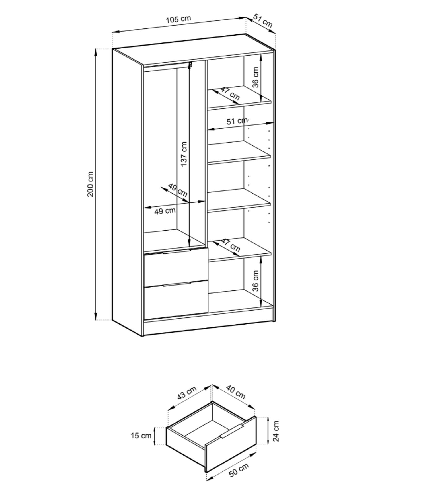 Szafa dwudrzwiowa NOE 105 z lustrem
