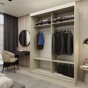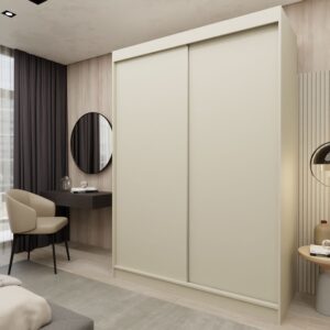 Szafa ORNELLA w odcieniu kaszmir łączy funkcjonalność i delikatną elegancję, stanowiąc doskonały wybór do jasnych, harmonijnych wnętrz.