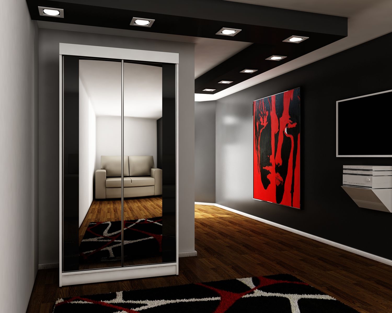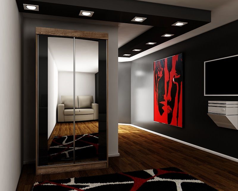 Szafa przesuwna SENSO 30 100 cm ze wstawkami dekoracyjnymi szklanymi i dwoma lustrami