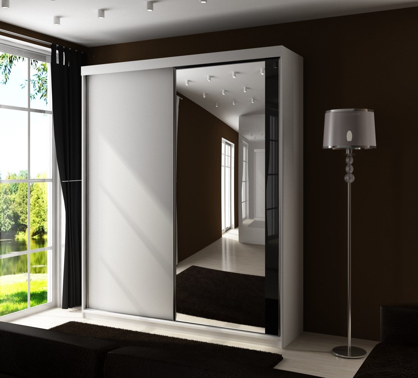 Szafa przesuwna SENSO 31 150 cm ze wstawką dekoracyjną szklaną i lustrem