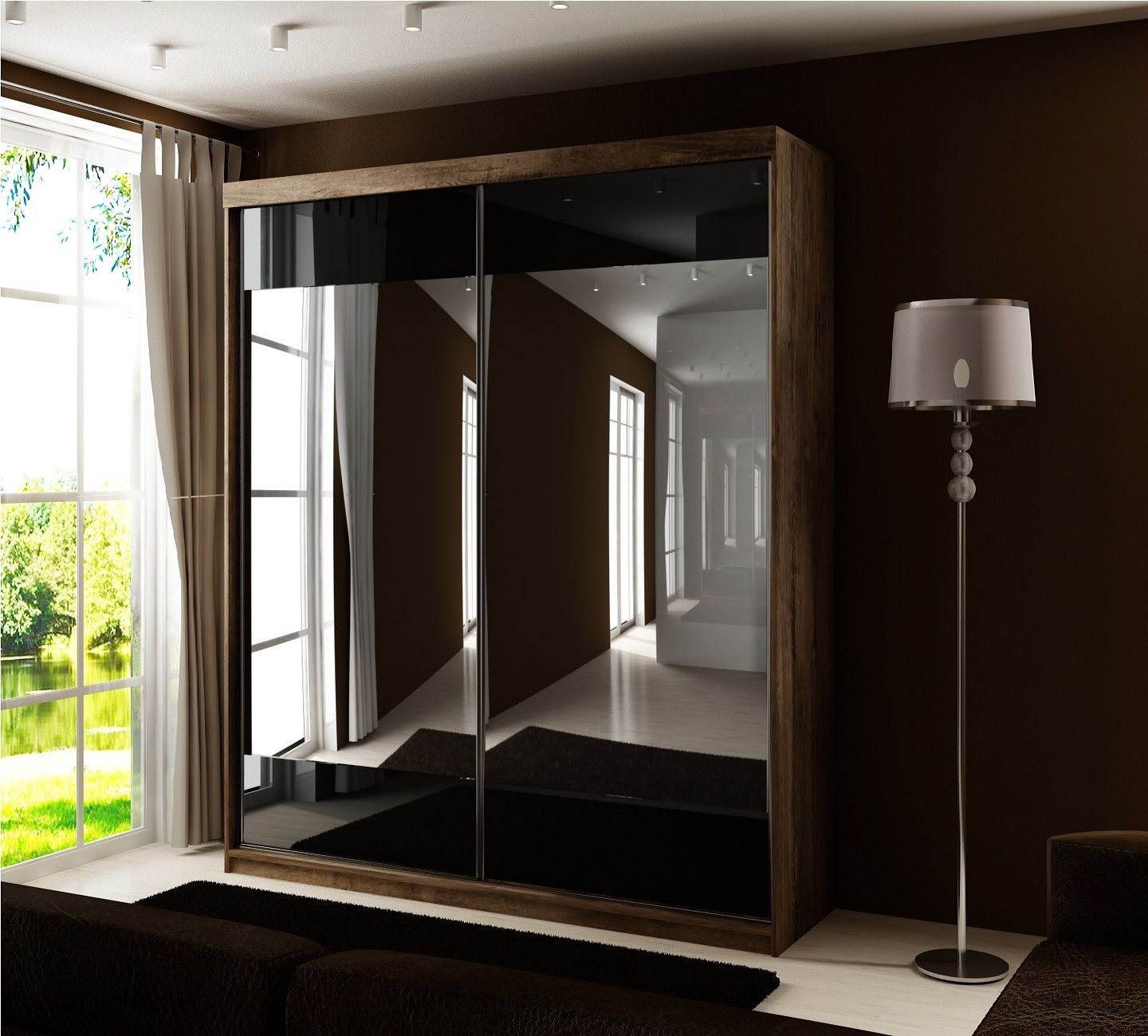 Szafa przesuwna SENSO 32 150 cm ze wstawkami dekoracyjnymi szklanymi i dwoma lustrami