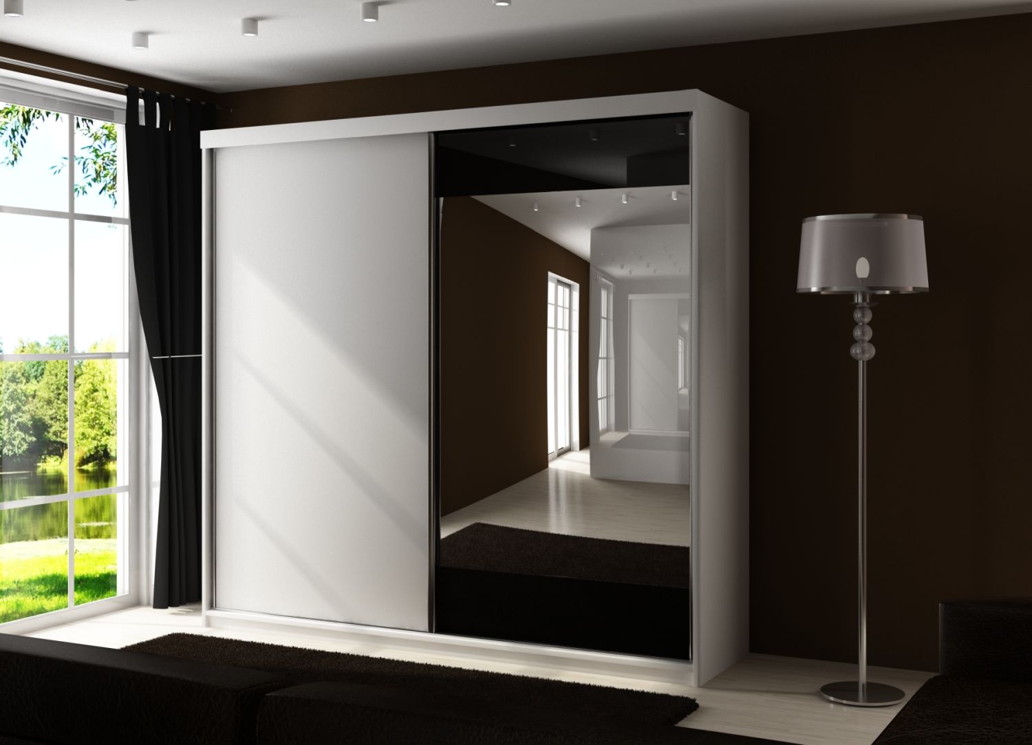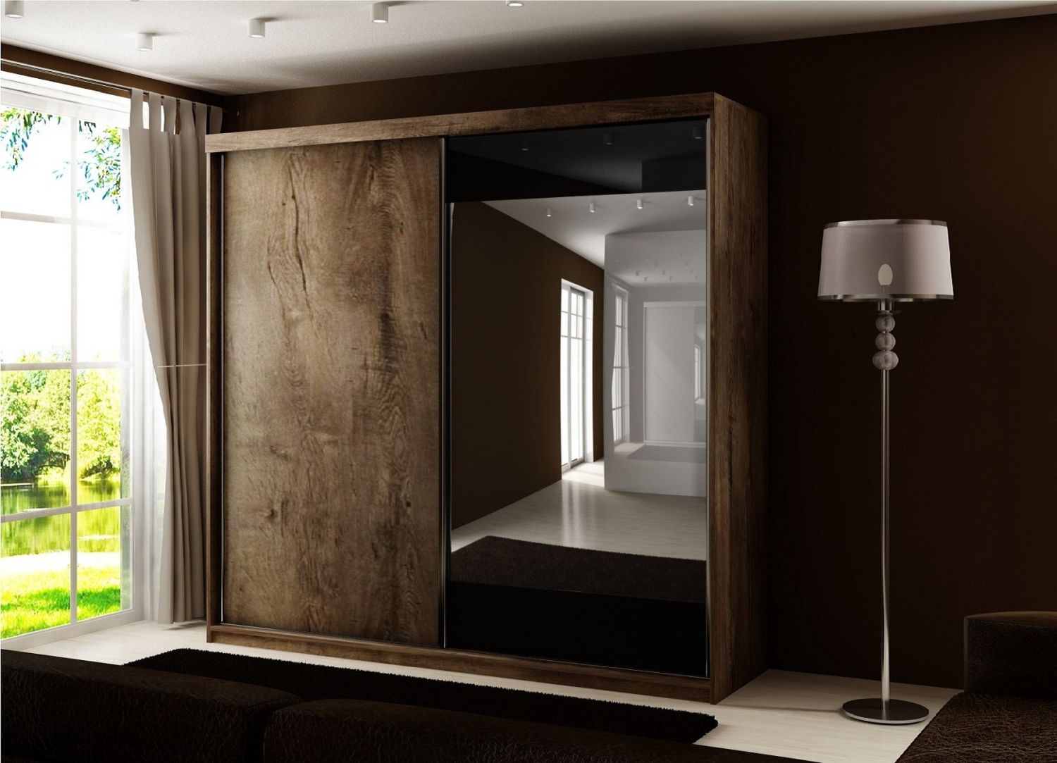 Szafa przesuwna SENSO 33 200 cm ze wstawkami dekoracyjnymi szklanymi i lustrem