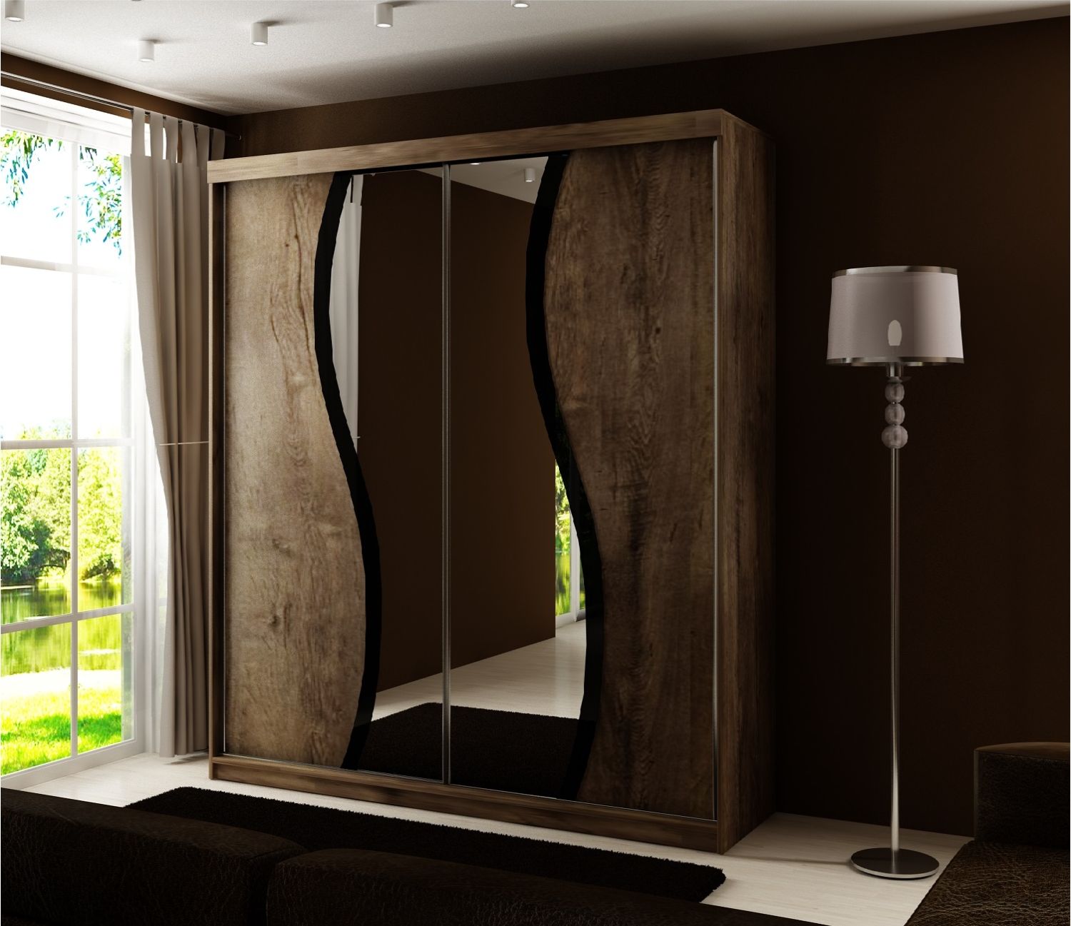 Szafa przesuwna SENSO 9 150 cm ze wstawkami dekoracyjnymi szklanymi i dwoma lustrami w falę