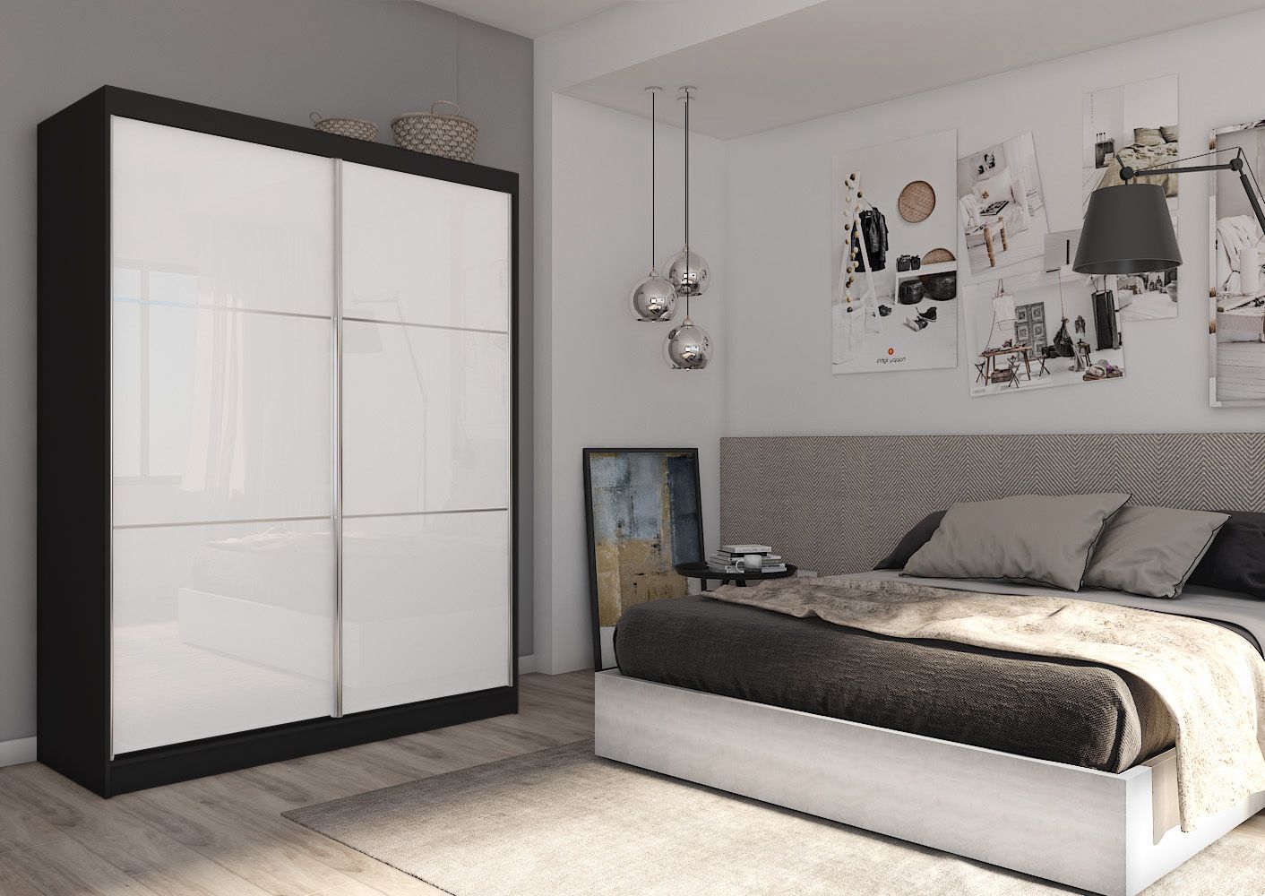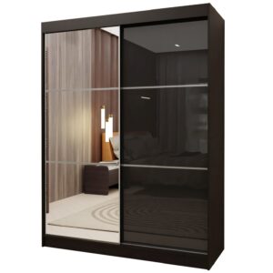 Szafa przesuwna SERENA 160 z panelem szklanym i listwami dekoracyjnymi czarny Szafa przesuwna SERENA 160 z panelem szklanym i listwami dekoracyjnymi czarny