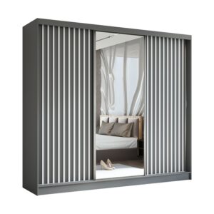Szafa przesuwna ALMIRA 240 z lustrem i lamelami grafitowy szary Szafa przesuwna ALMIRA 240 z lustrem i lamelami grafitowy szary