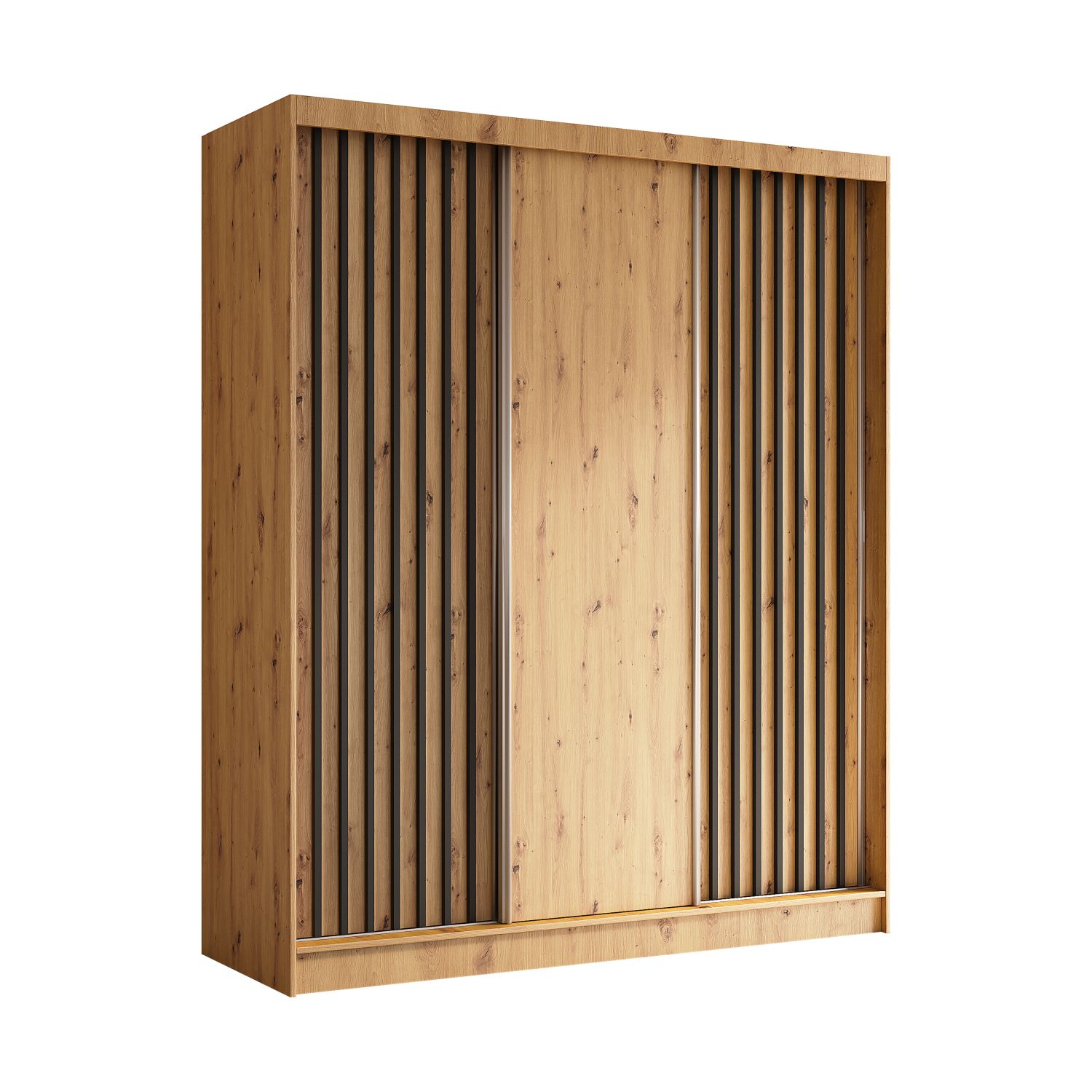 Szafa przesuwna ILARIA 180 z dwiema szufladami, lamelami dąb artisan