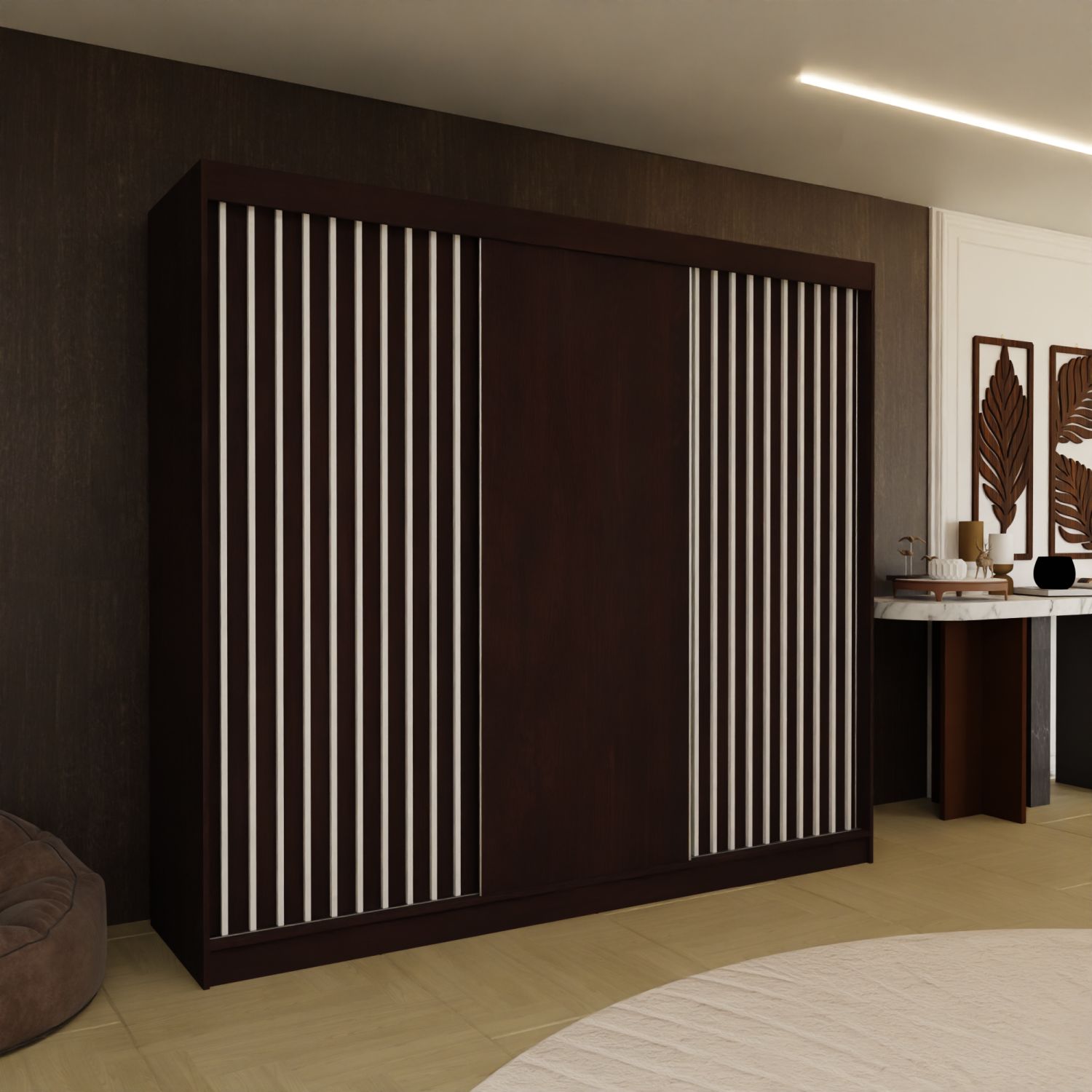 Szafa przesuwna ILARIA 240 PLUS z czteroma szufladami, lamelami wenge