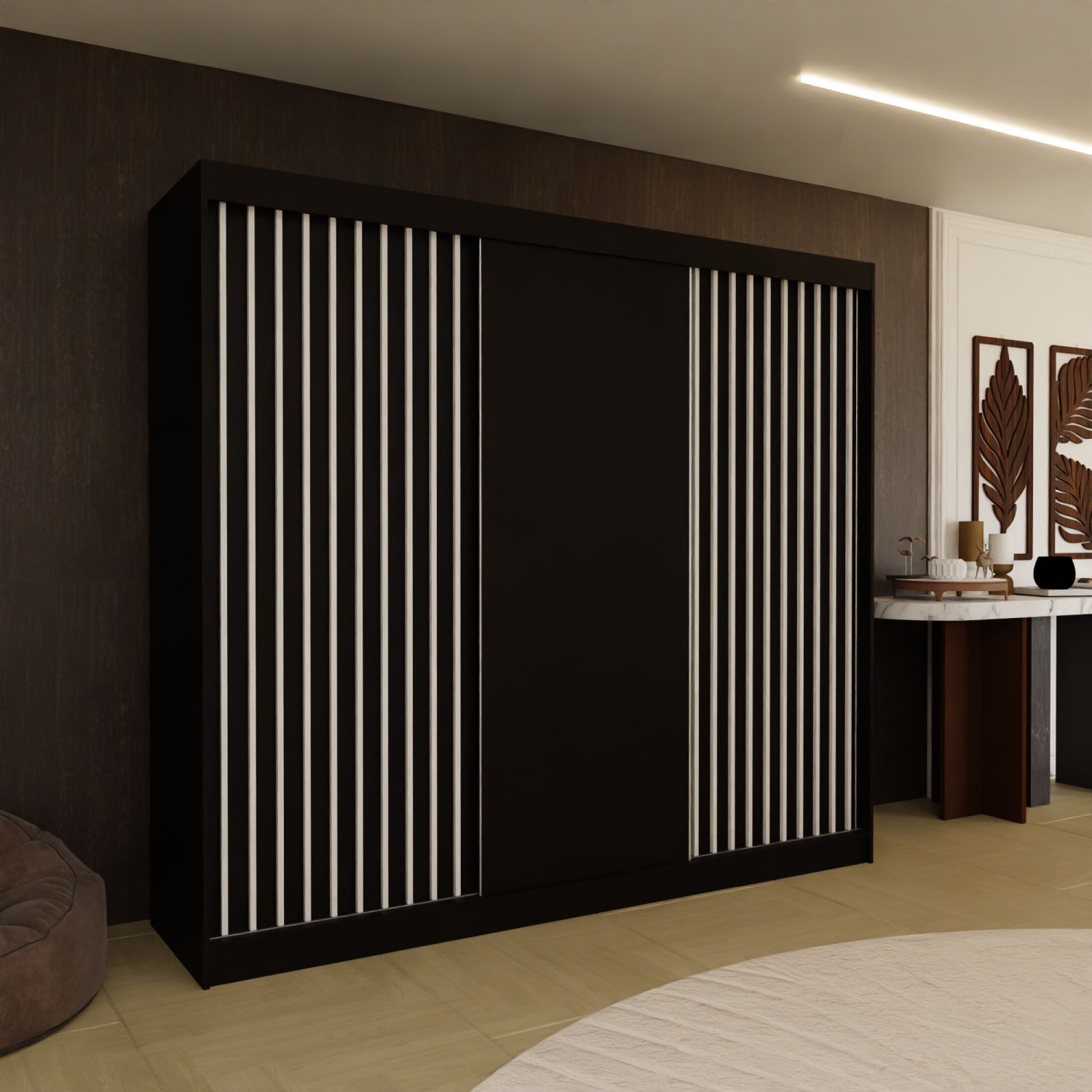 Szafa przesuwna ILARIA 240 z lamelami czarny Szafa przesuwna ILARIA 240 z lamelami czarny