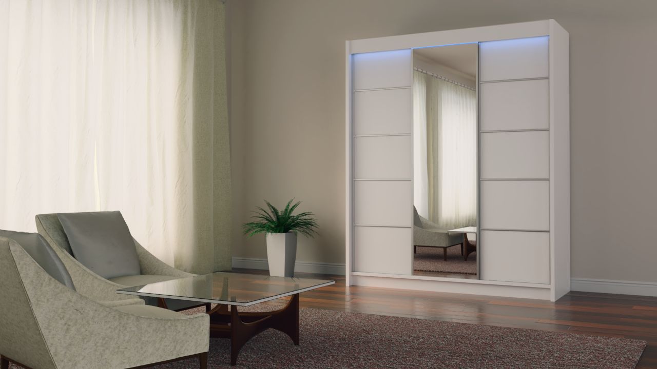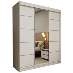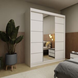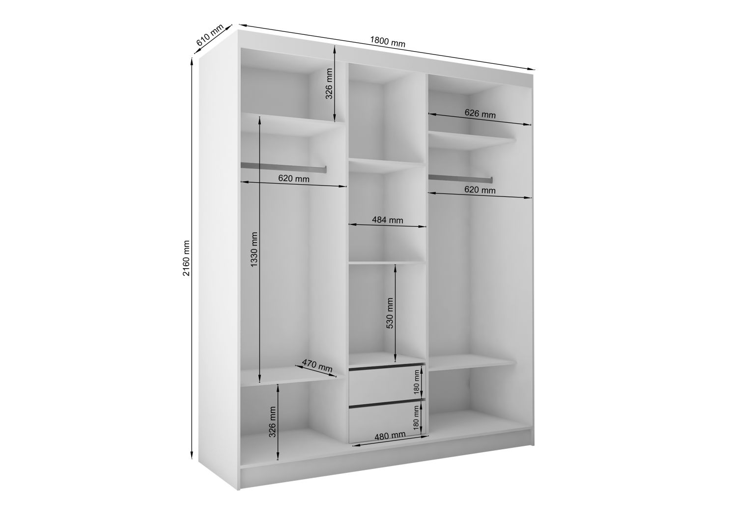 Szafa przesuwna MELIORA 180 z dwiema szufladami, lustrem i listwami dekoracyjnymi biały