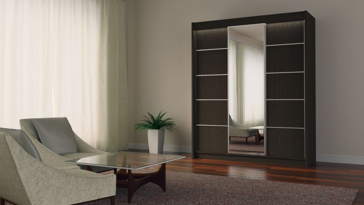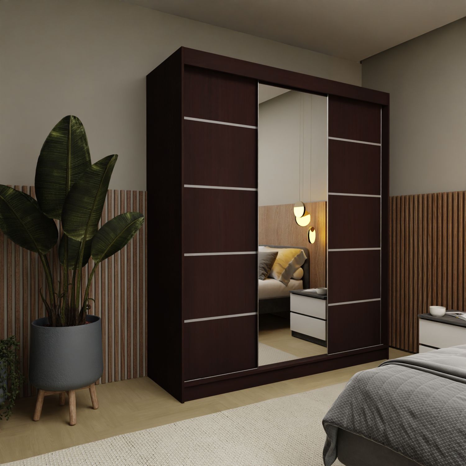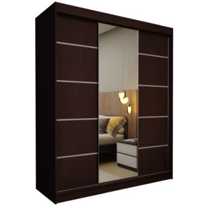 Szafa przesuwna MELIORA 180 z dwiema szufladami, lustrem i listwami dekoracyjnymi wenge