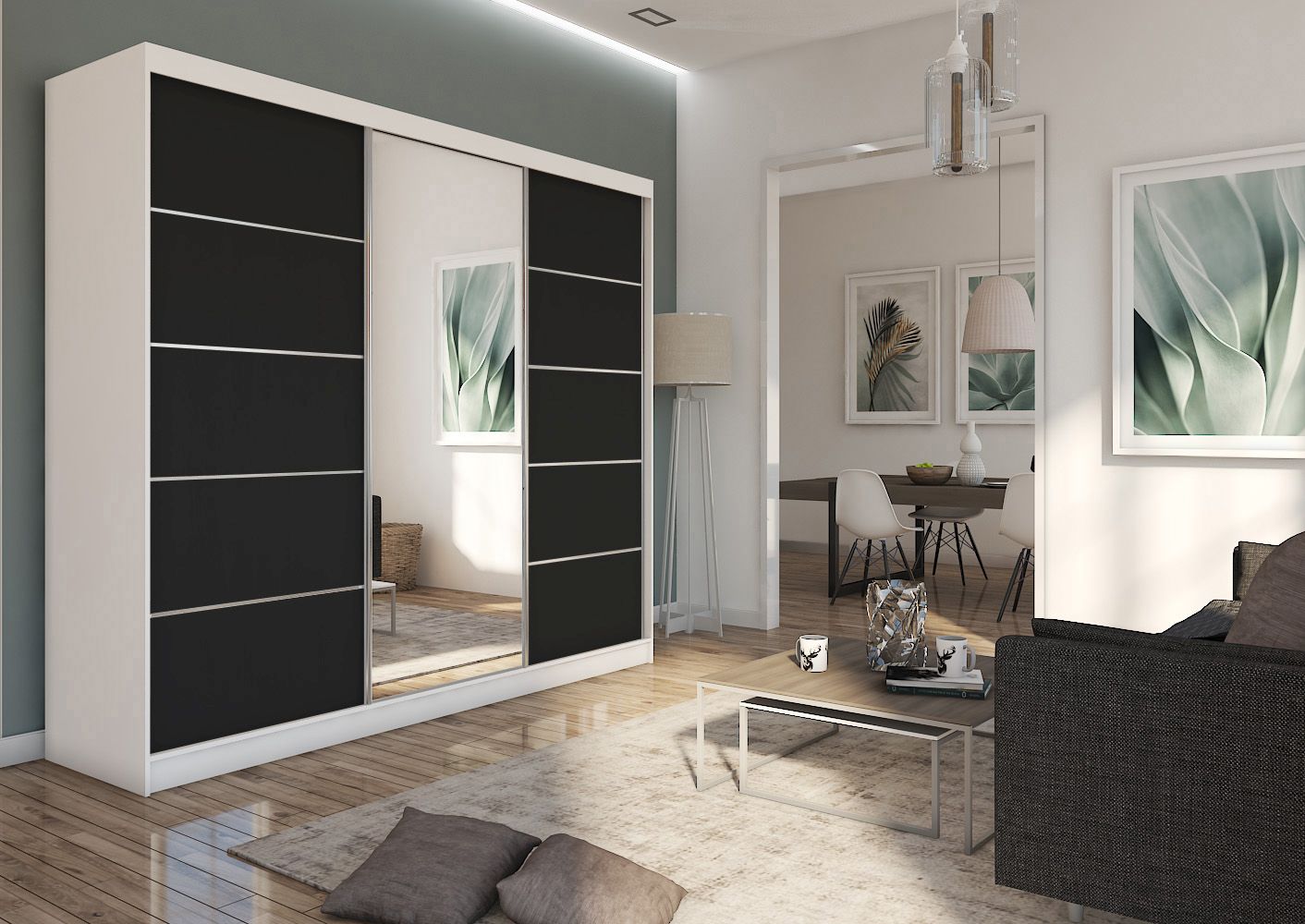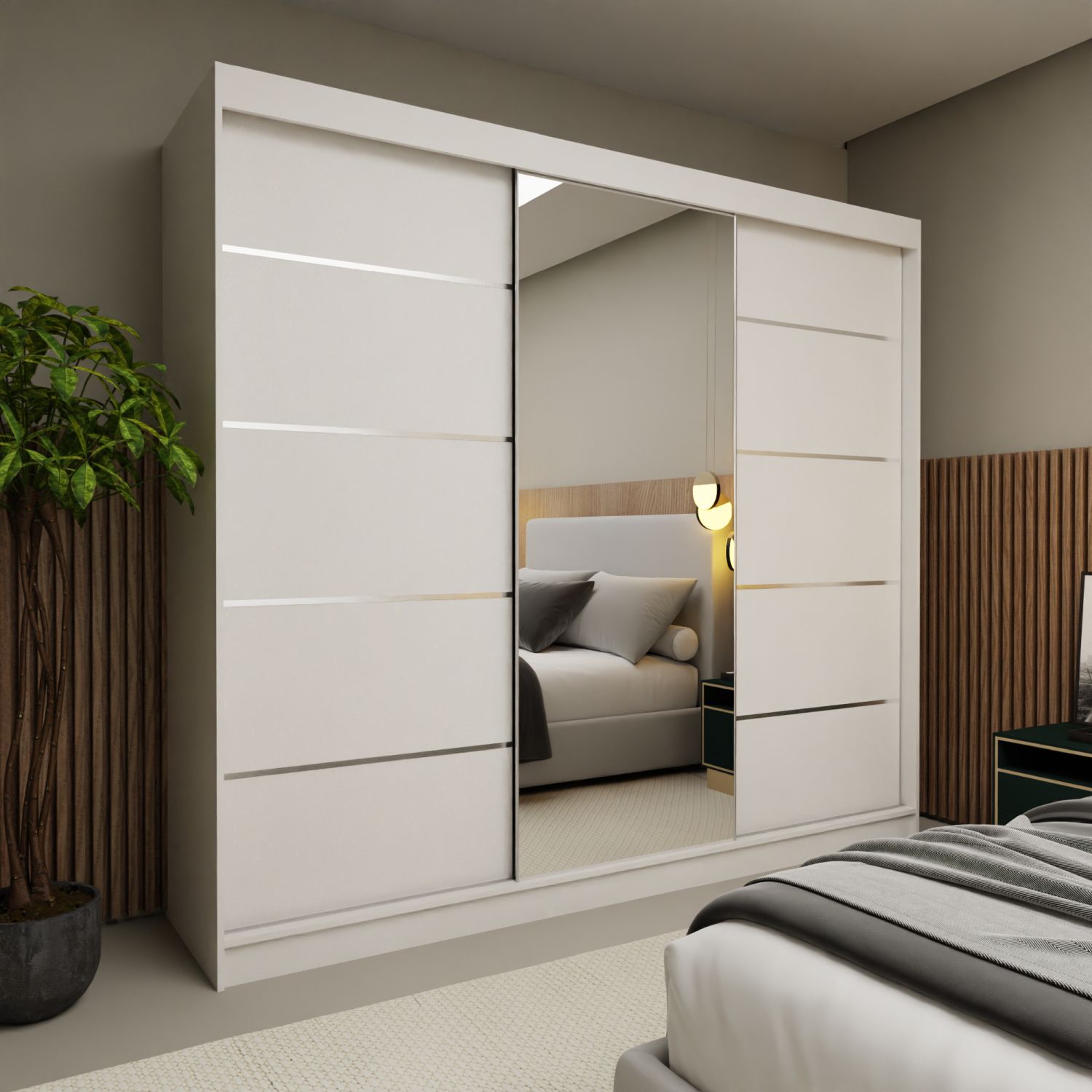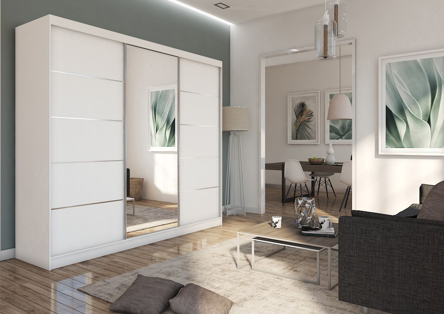Szafa przesuwna MELIORA 240 z lustrem i listwami dekoracyjnymi biały