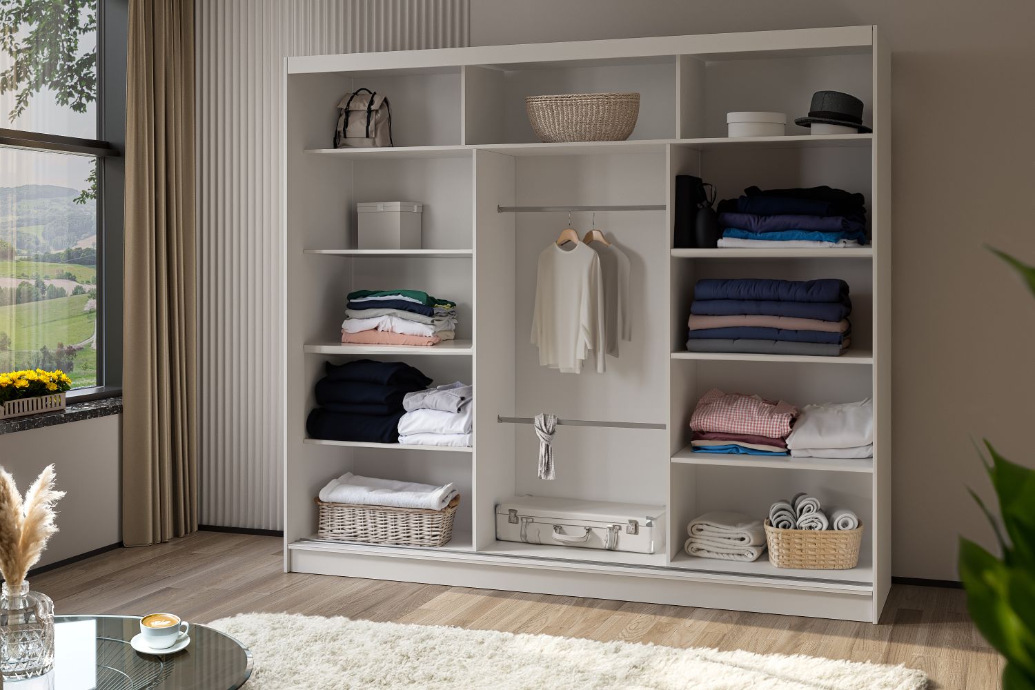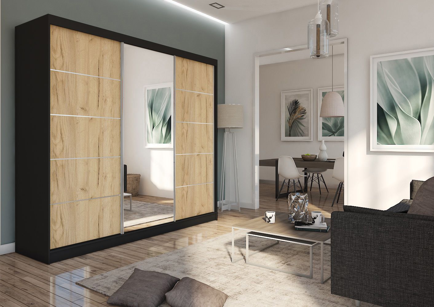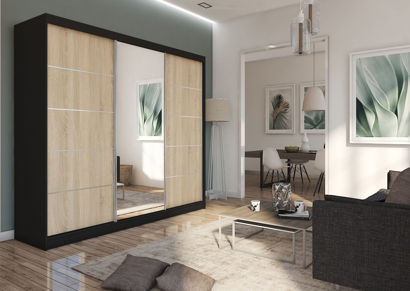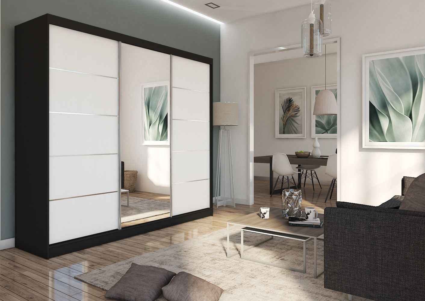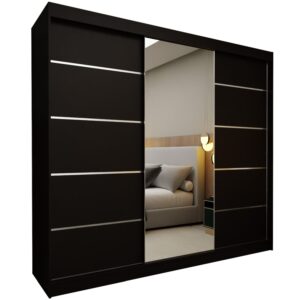 Szafa przesuwna MELIORA 240 z lustrem i listwami dekoracyjnymi czarny
