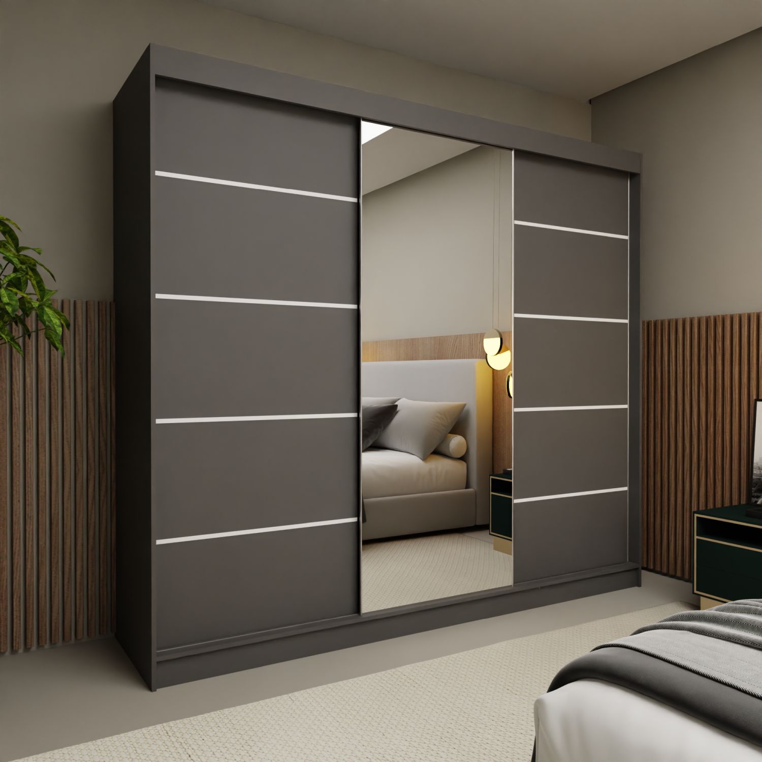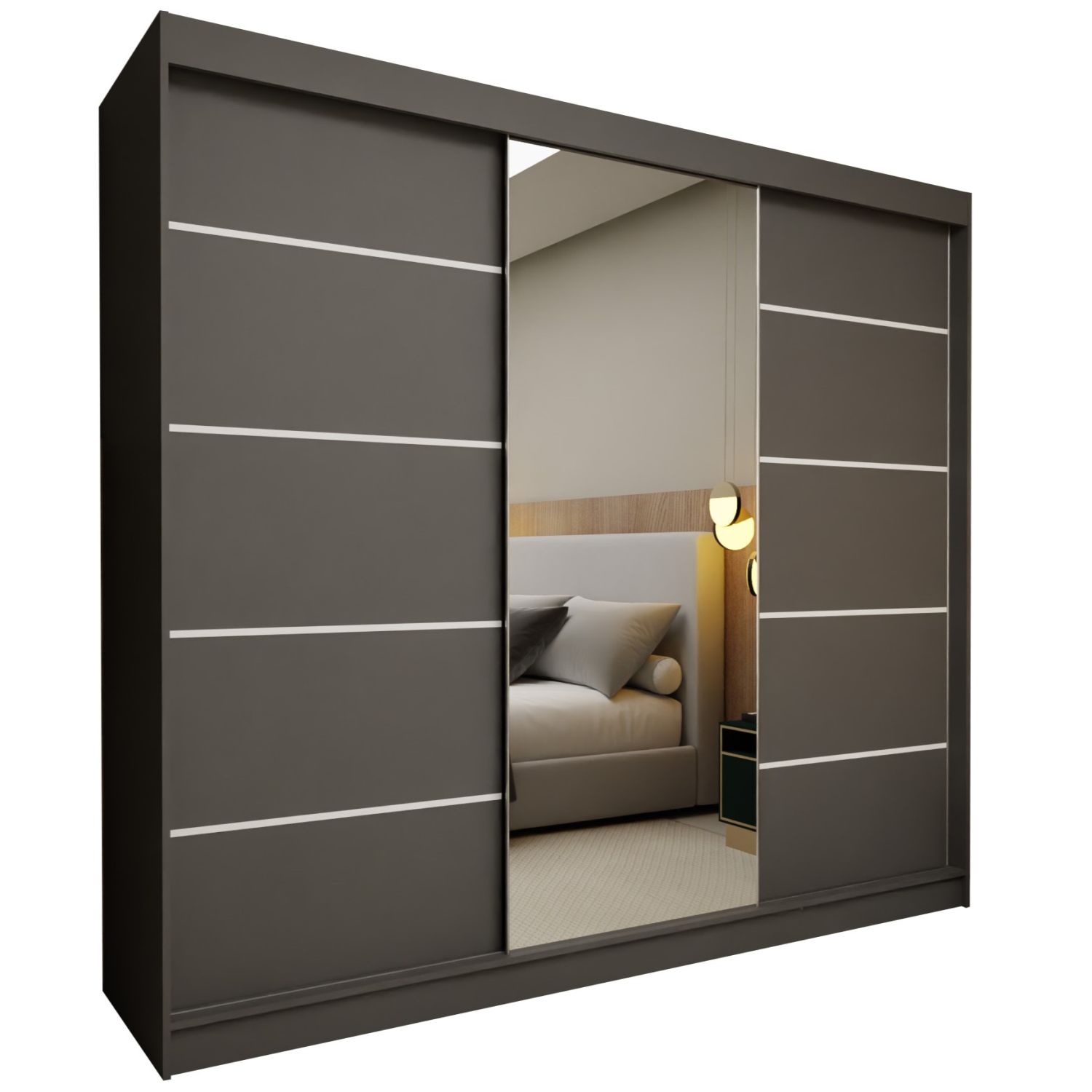 Szafa przesuwna MELIORA 240 z lustrem i listwami dekoracyjnymi grafitowy szary Szafa przesuwna MELIORA 240 z lustrem i listwami dekoracyjnymi grafitowy szary