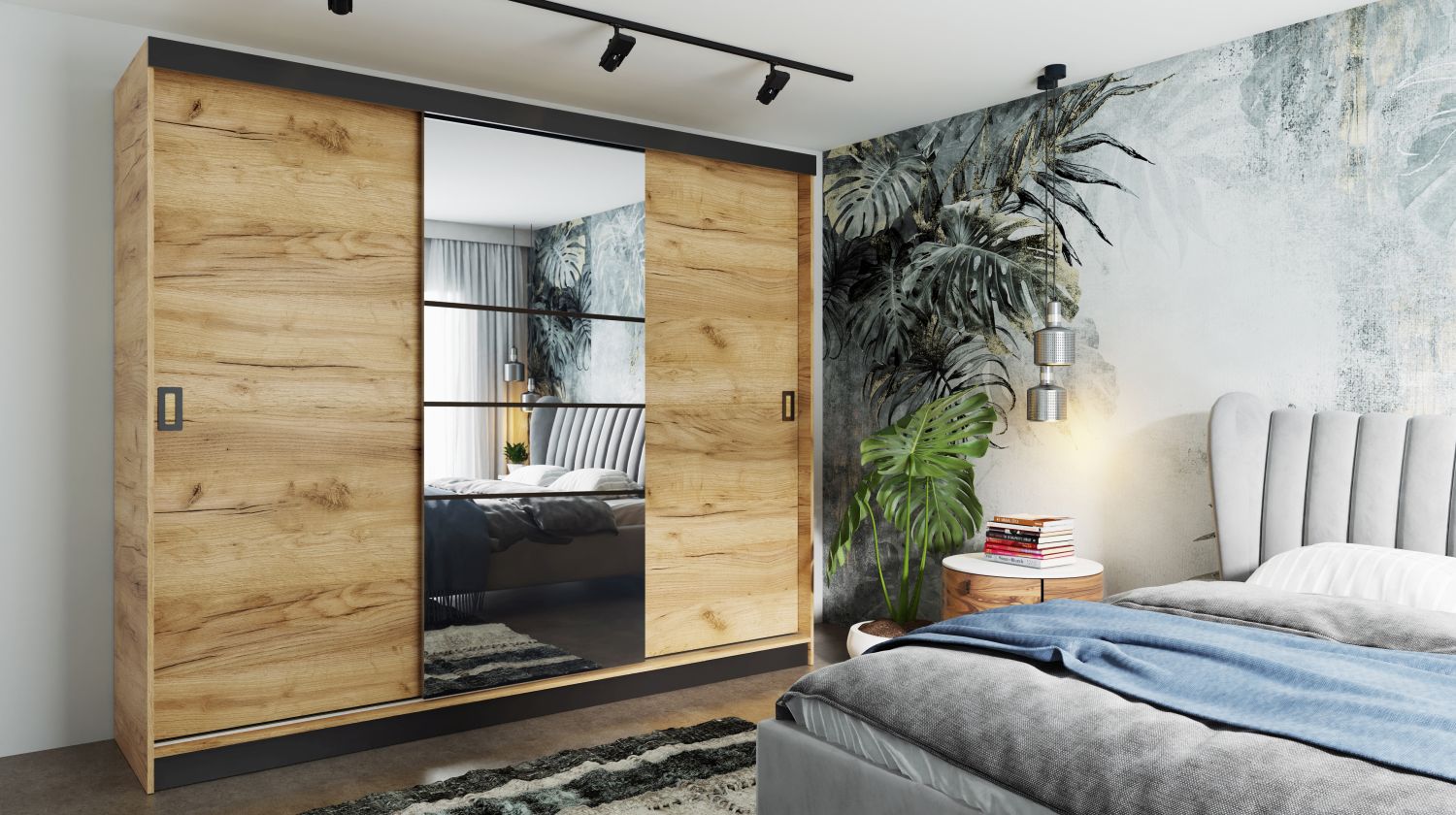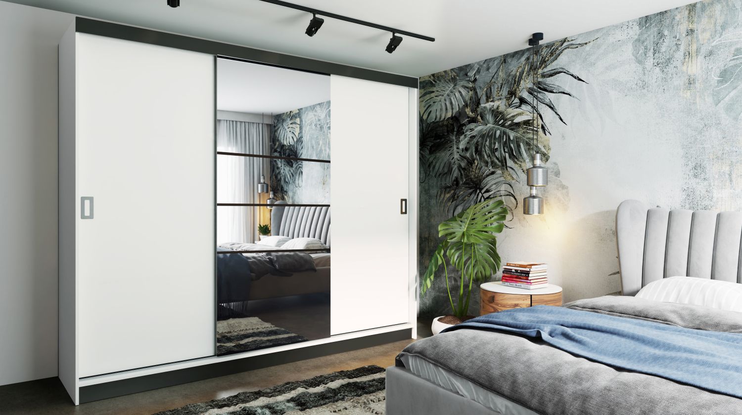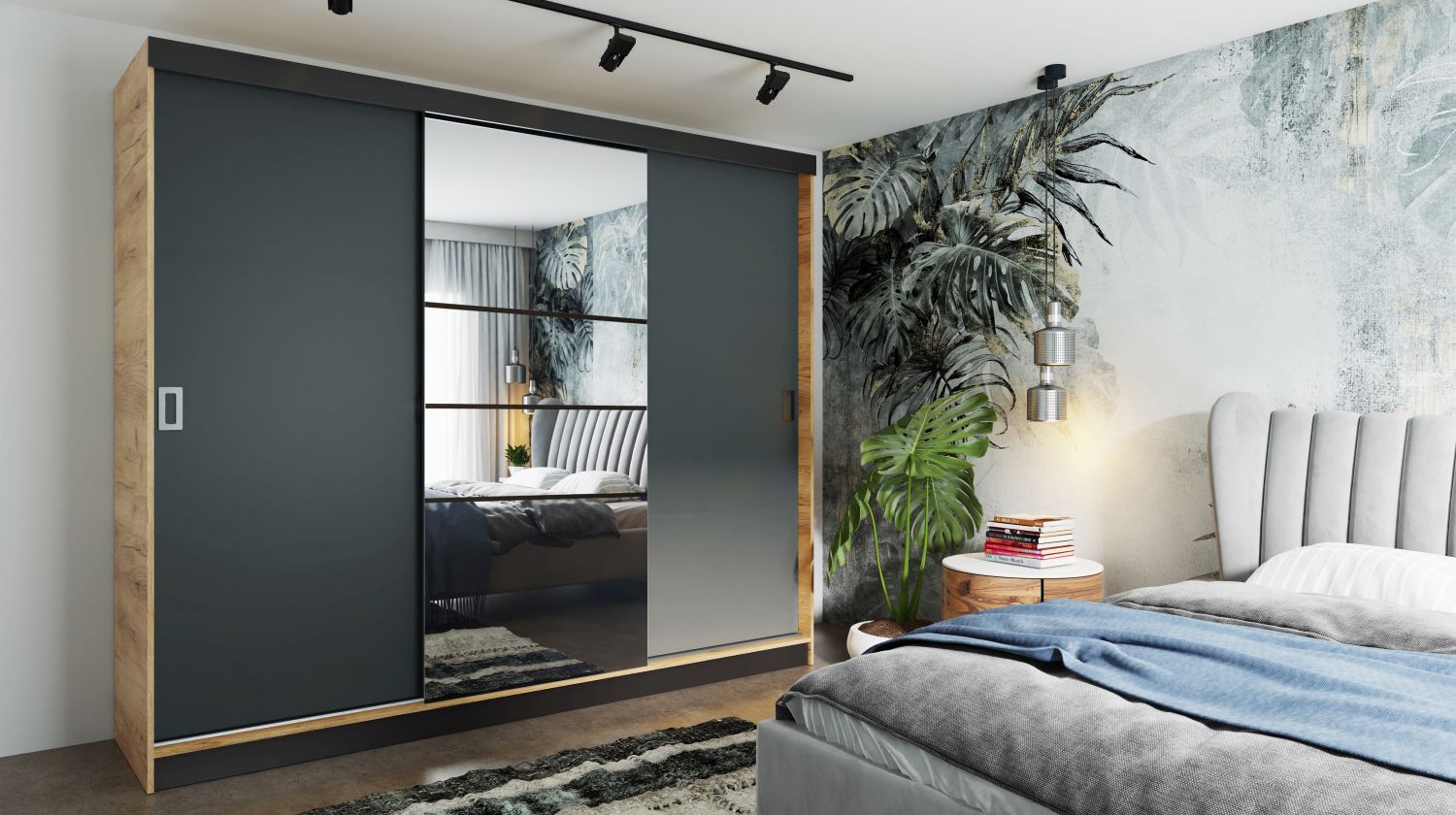 Szafa MODERN 6 250 cm z lustrem to elegancki i pojemny mebel, który łączy nowoczesny design z pełną funkcjonalnością.