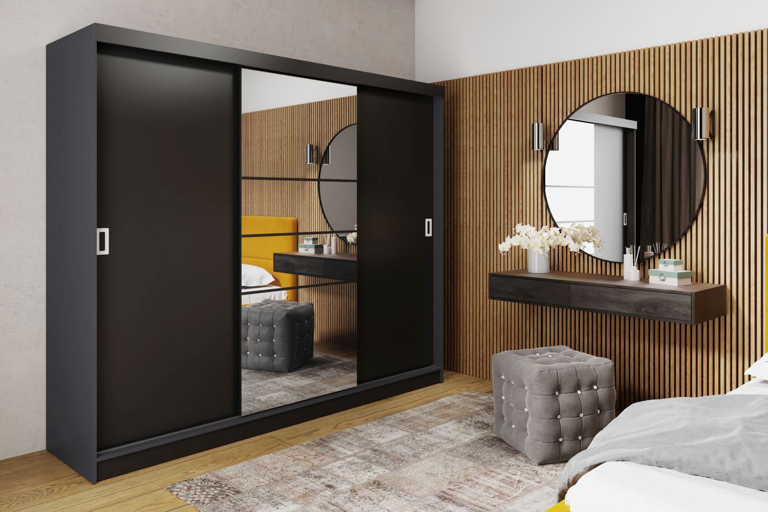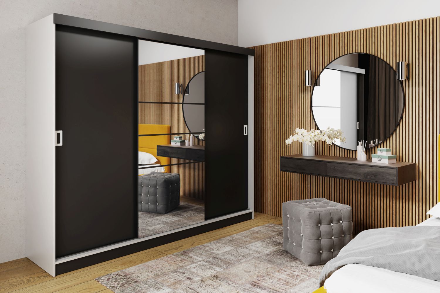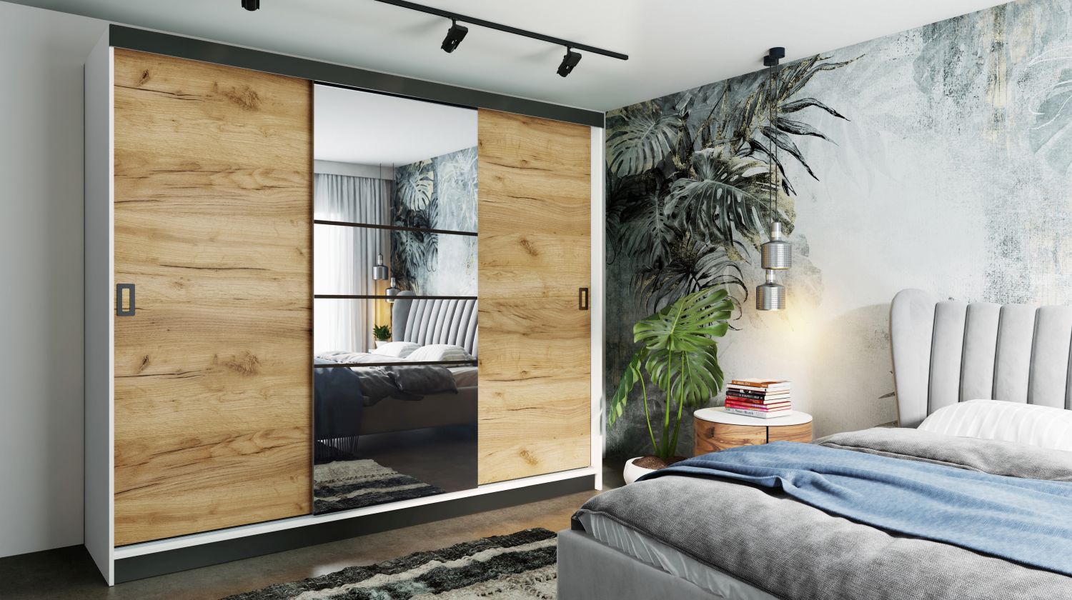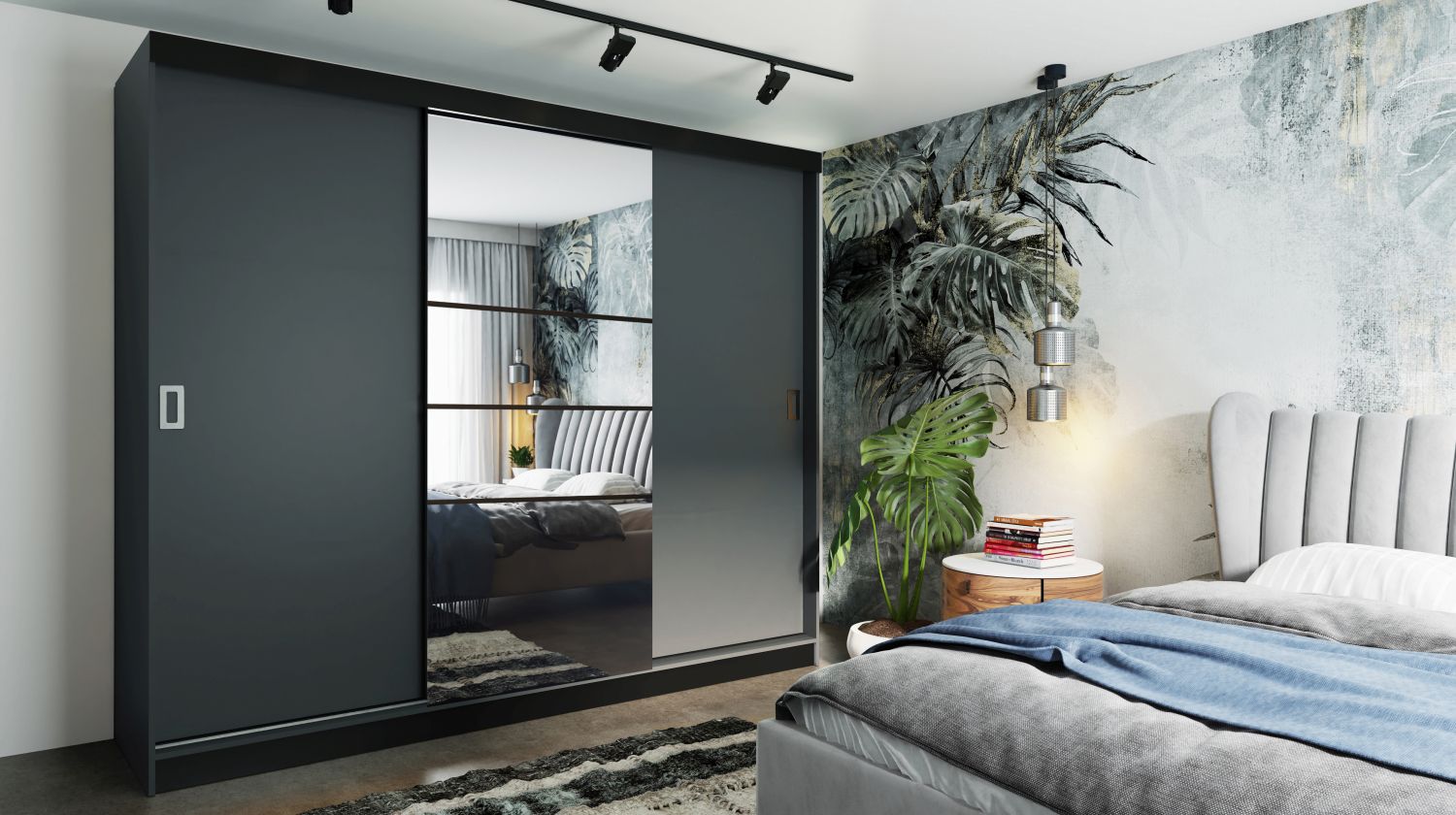 Szafa MODERN 6 250 cm z lustrem to elegancki i pojemny mebel, który łączy nowoczesny design z pełną funkcjonalnością.