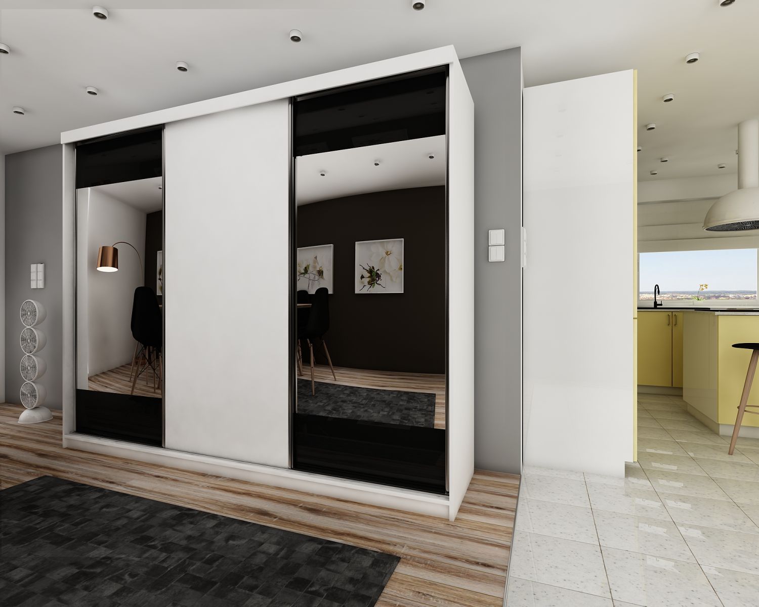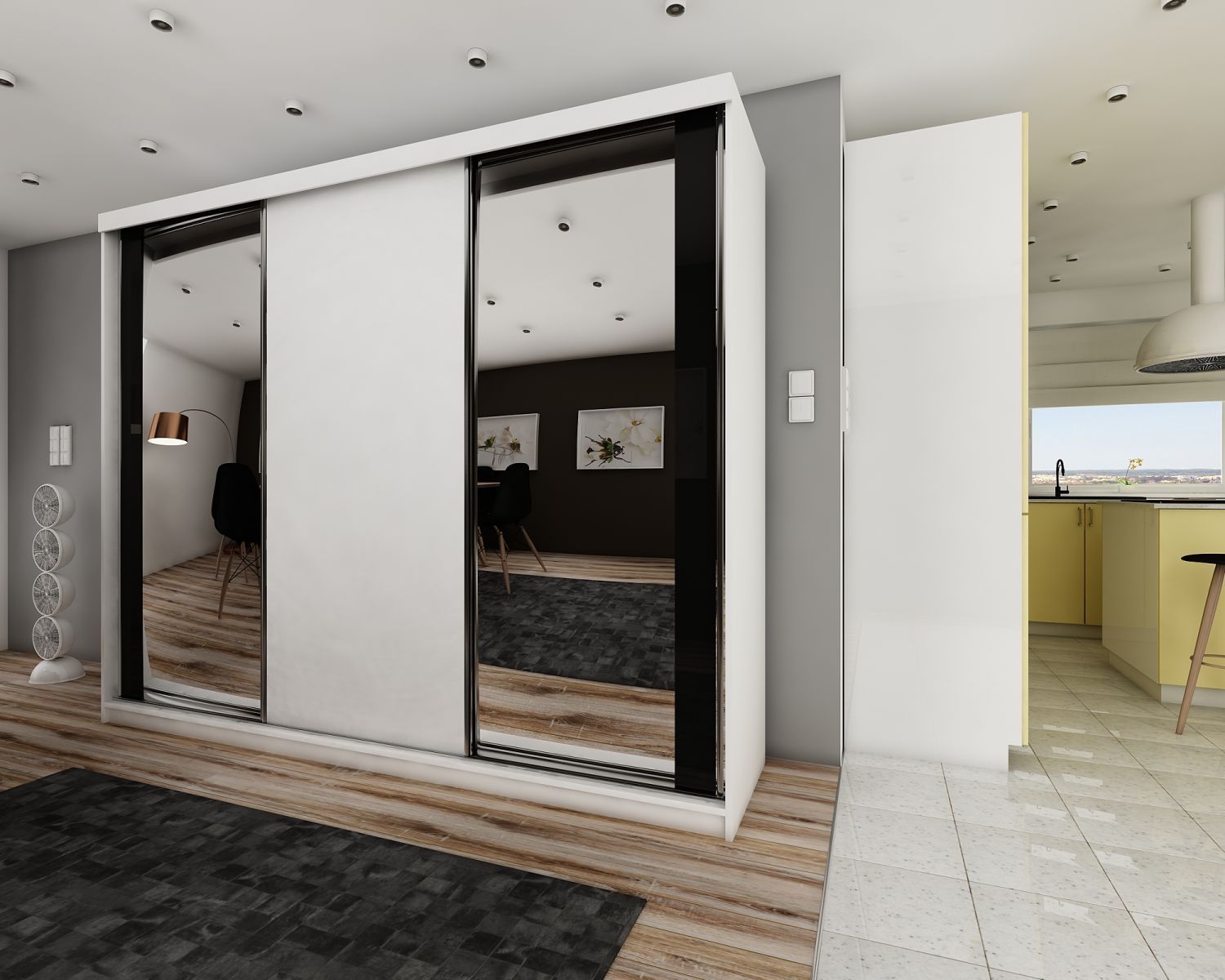 Szafa przesuwna SENSO 34 250 cm ze wstawkami dekoracyjnymi szklanymi i dwoma lustrami
