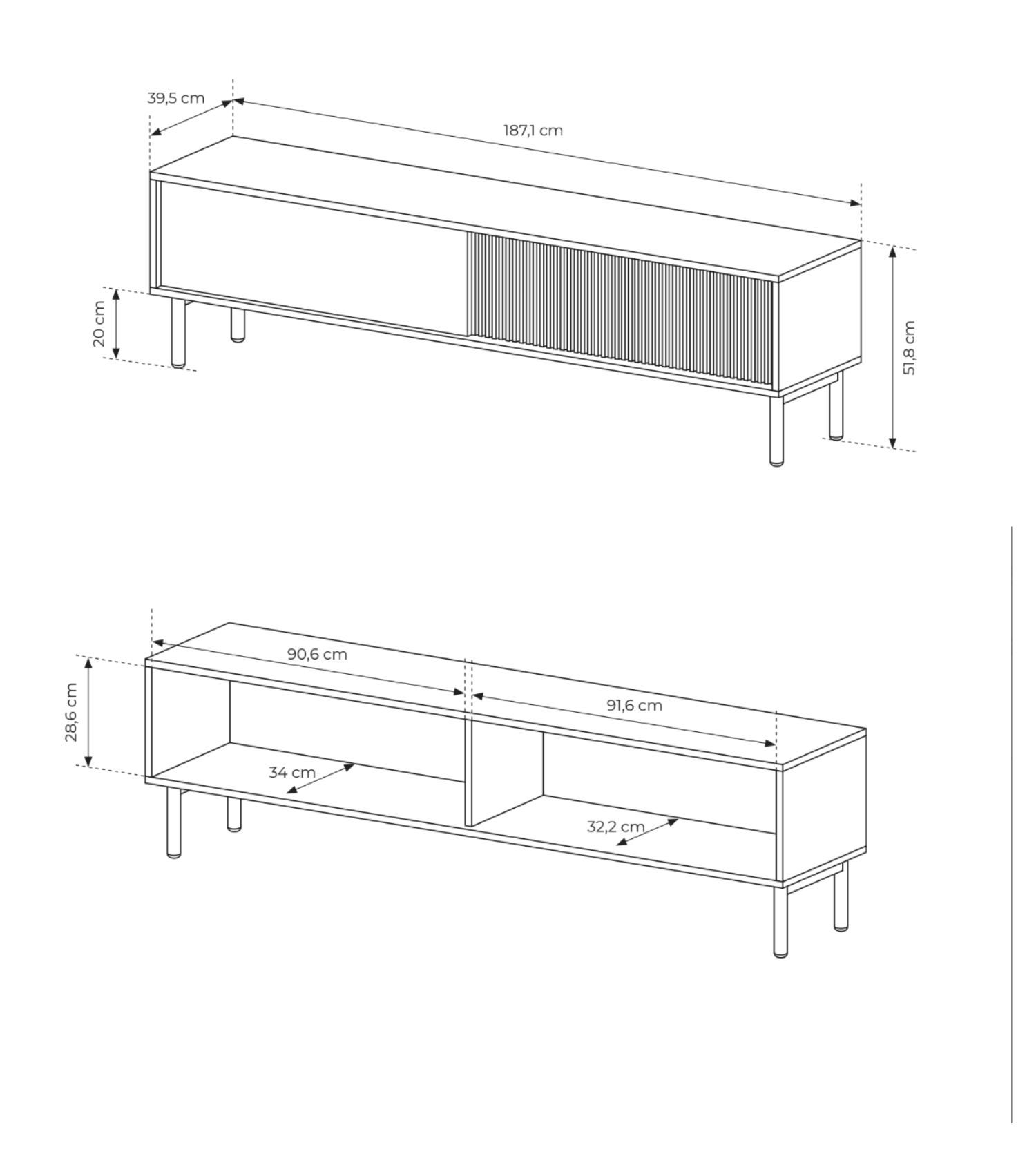 Szafka RTV dwudrzwiowa FERRO 187 cm ryflowany front dąb cremona