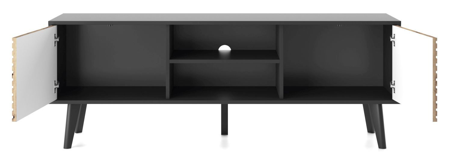 Szafka RTV dwudrzwiowa SILA 154 cm, ryflowany front dąb artisan, czarny