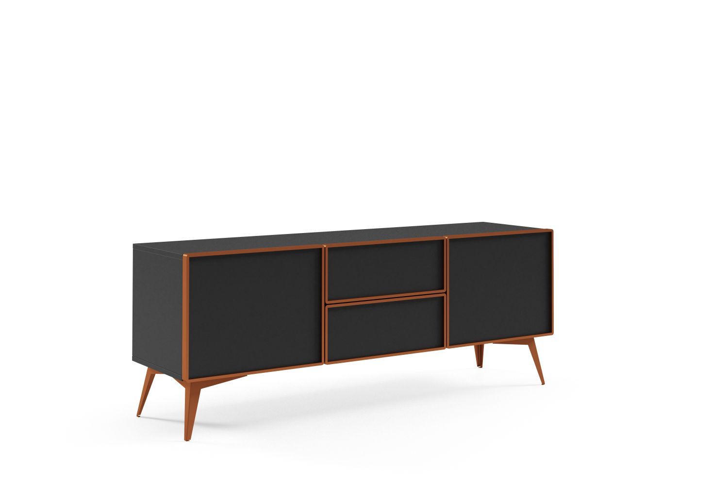 Szafka RTV trzydrzwiowa MEDU 161 cm metalowe okucia, czarny