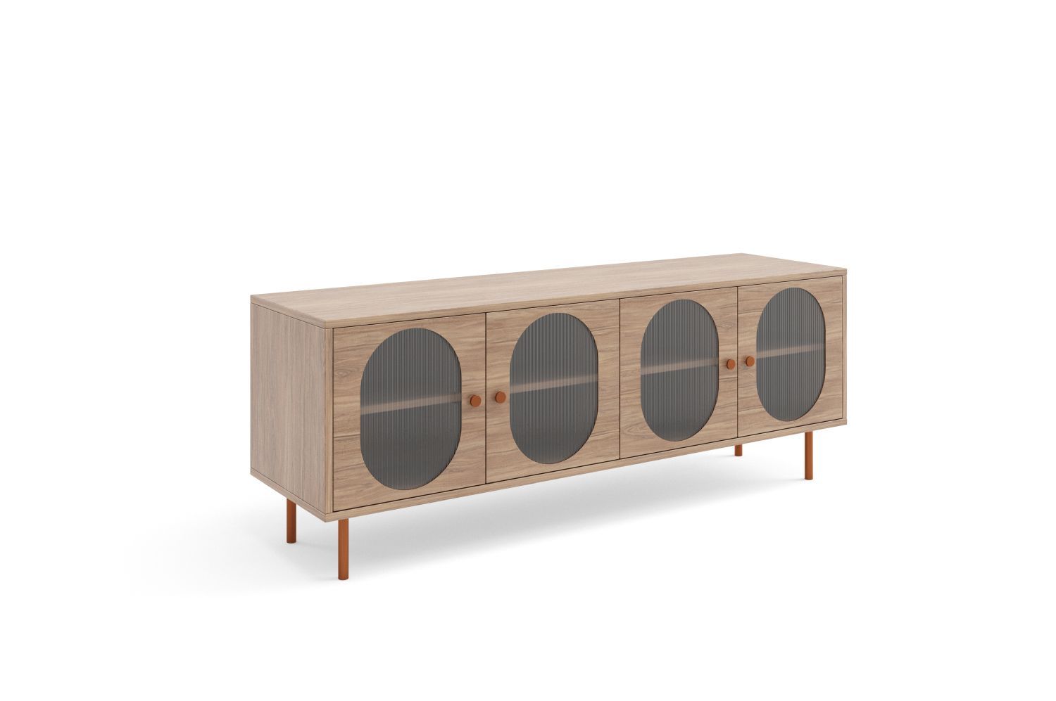 Szafka RTV czterodrzwiowa VOLT 161 cm przeszklona, orzech włoski