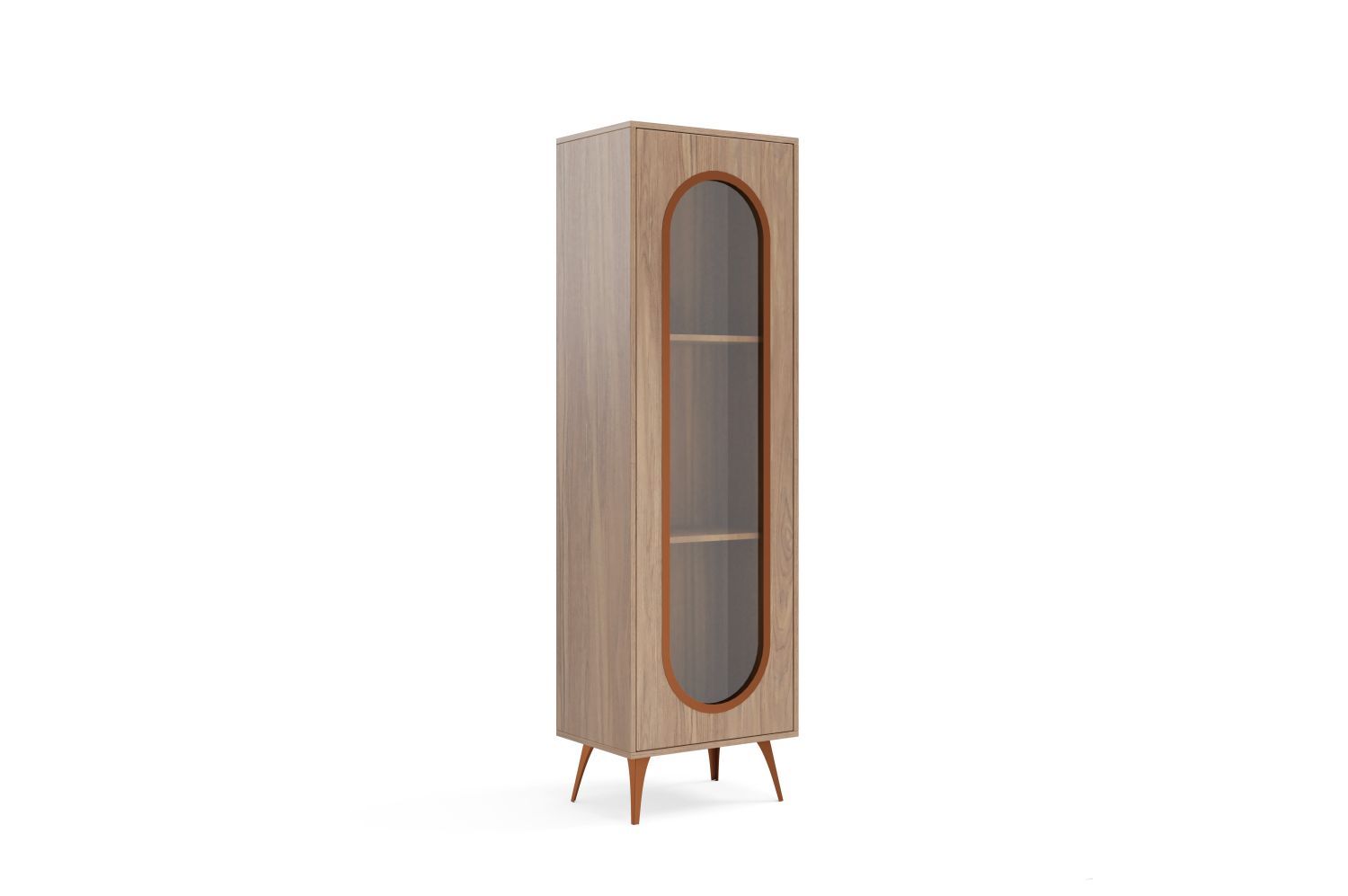 Witryna CAZZU 200 cm przeszklona z przydymionym szkłem i złotymi detalami, orzech włoski