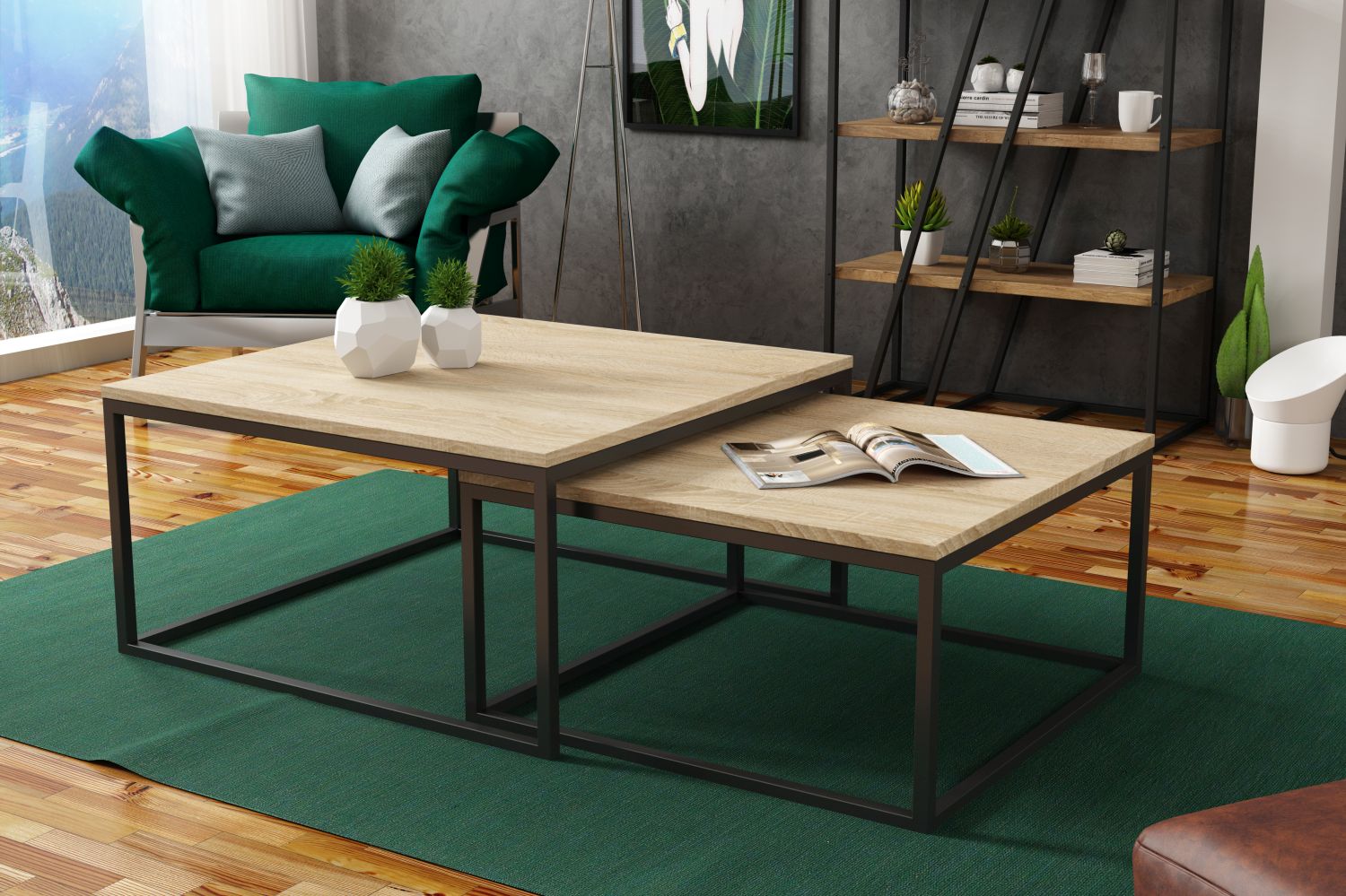 Zestaw stolików kawowych SOLARO 76×76 + 66×66 cm